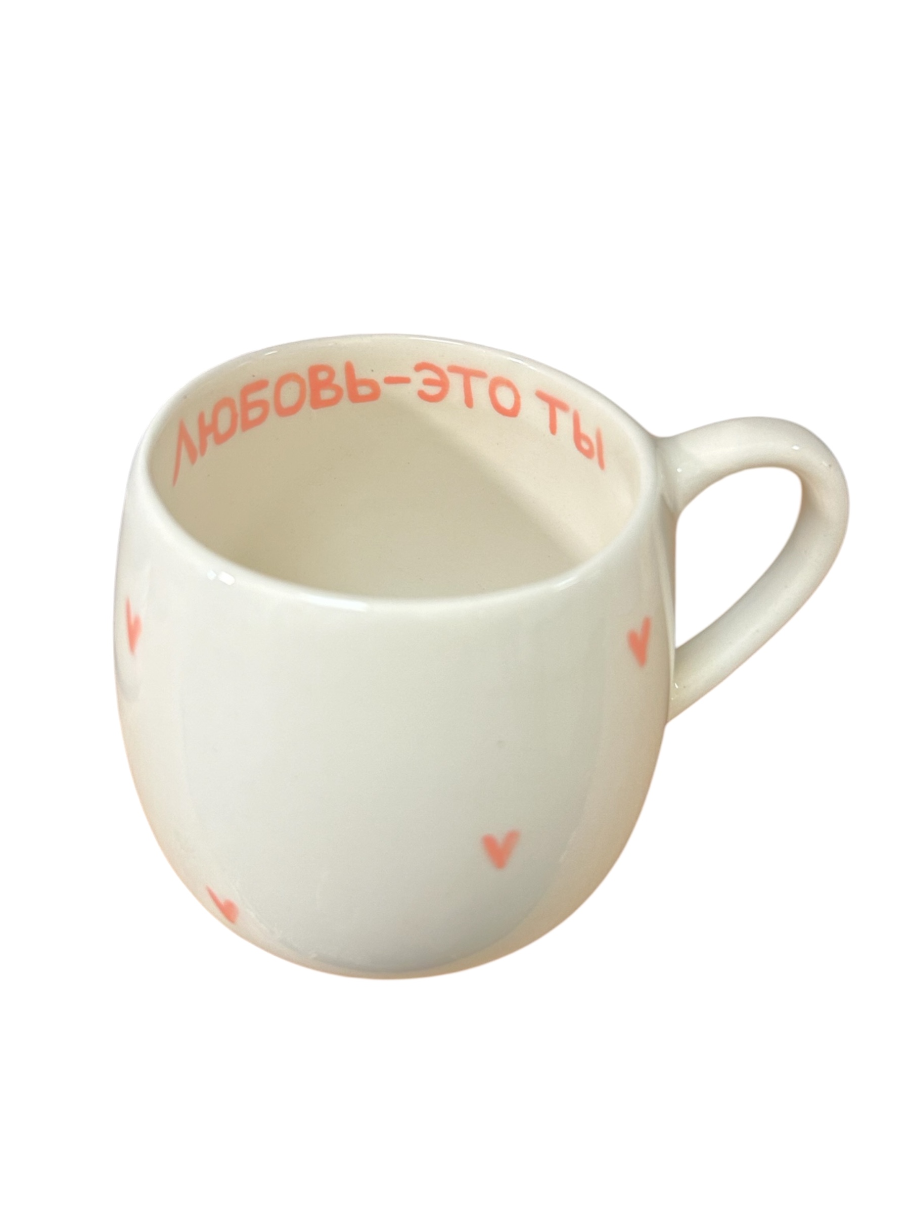 Кружка ручной работы круглая «Любовь - это ты», розовая, керамика, 250 мл