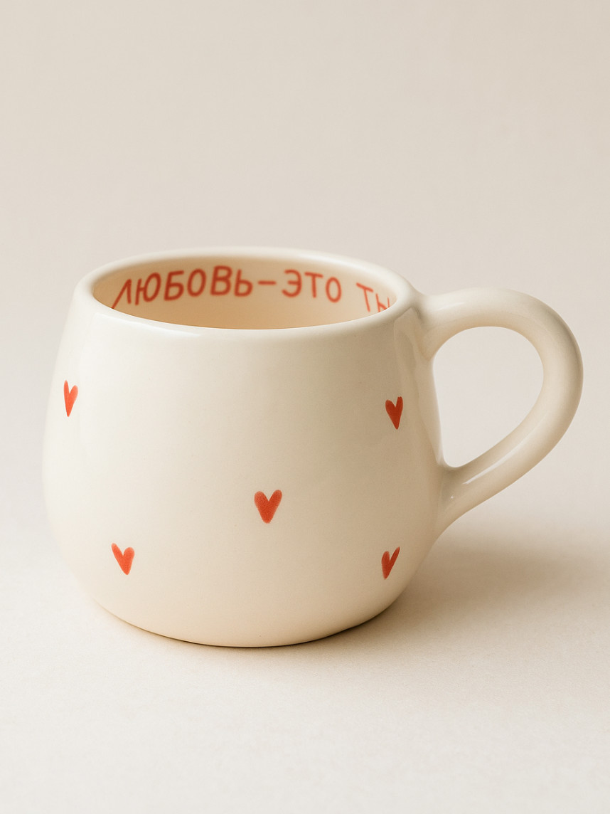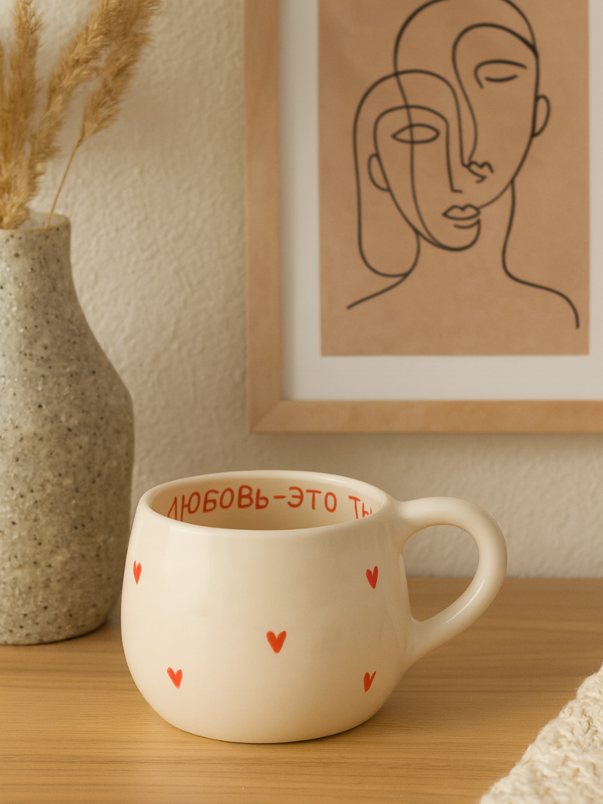 Кружка ручной работы круглая «Любовь - это ты», розовая, керамика, 400 мл