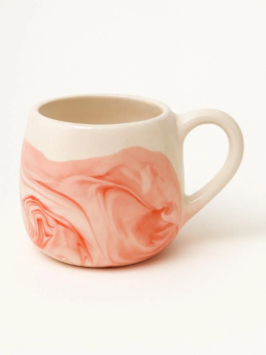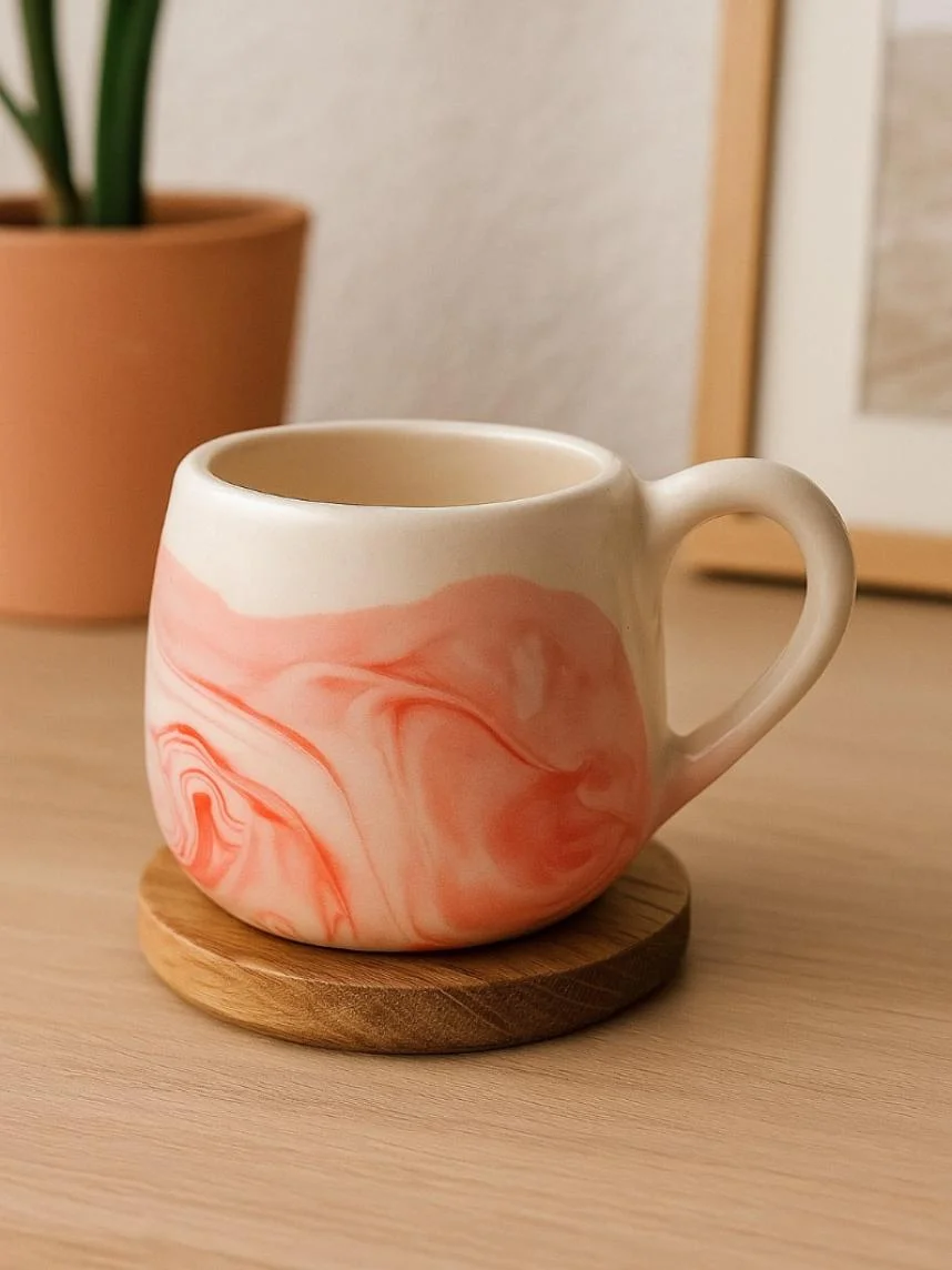 Кружка ручной работы РУКИ В ГЛИНЕ «Розовый мрамор», керамика, 400 мл, круглая