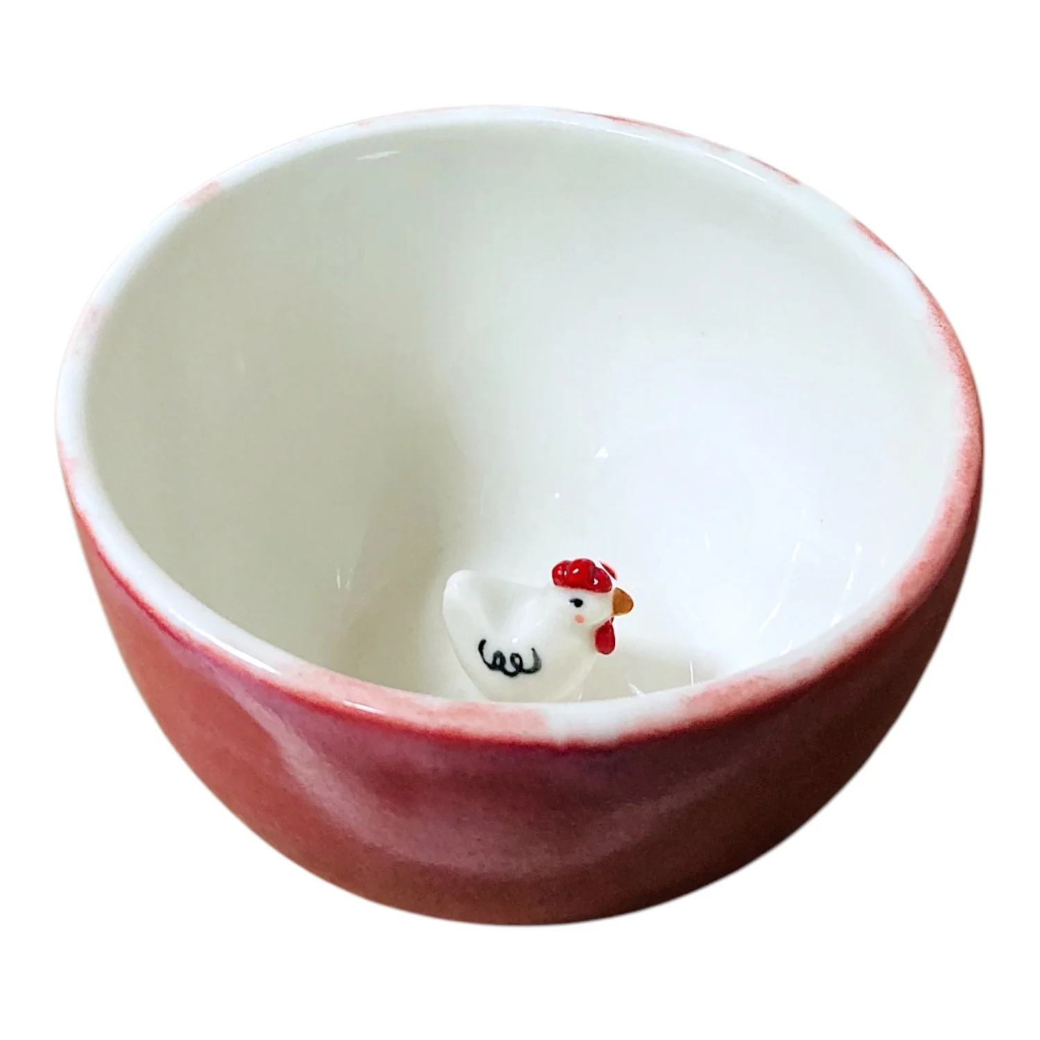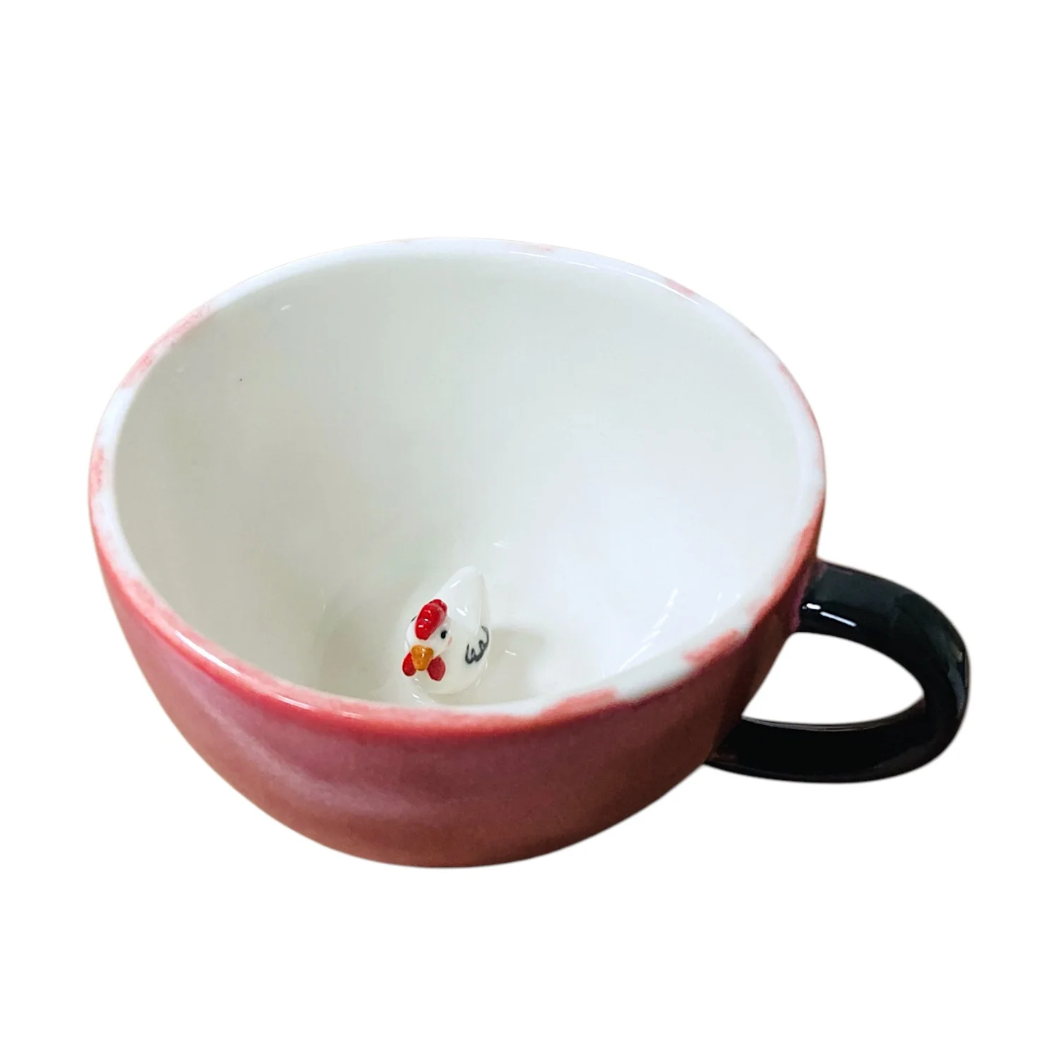 Кружка ручной работы Маковка с фигуркой внутри «Курочка», розовая, 300 мл, круглая