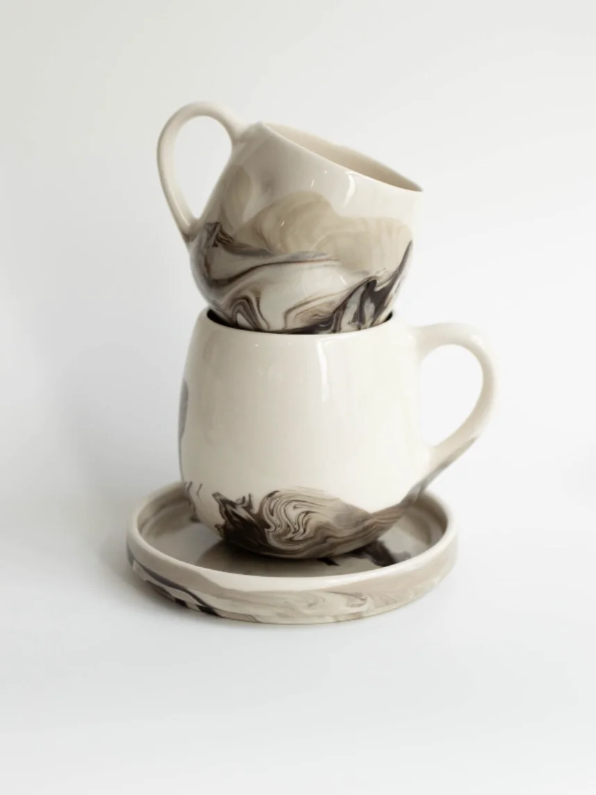 Кружка ручной работы РУКИ В ГЛИНЕ «Серый мрамор», керамика, 250 мл, круглая
