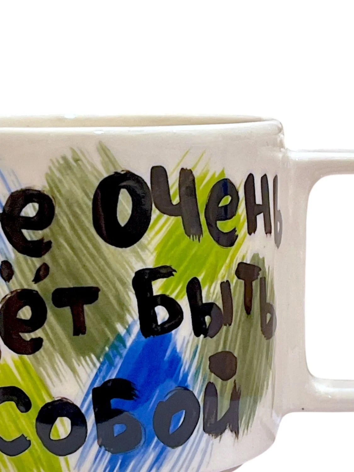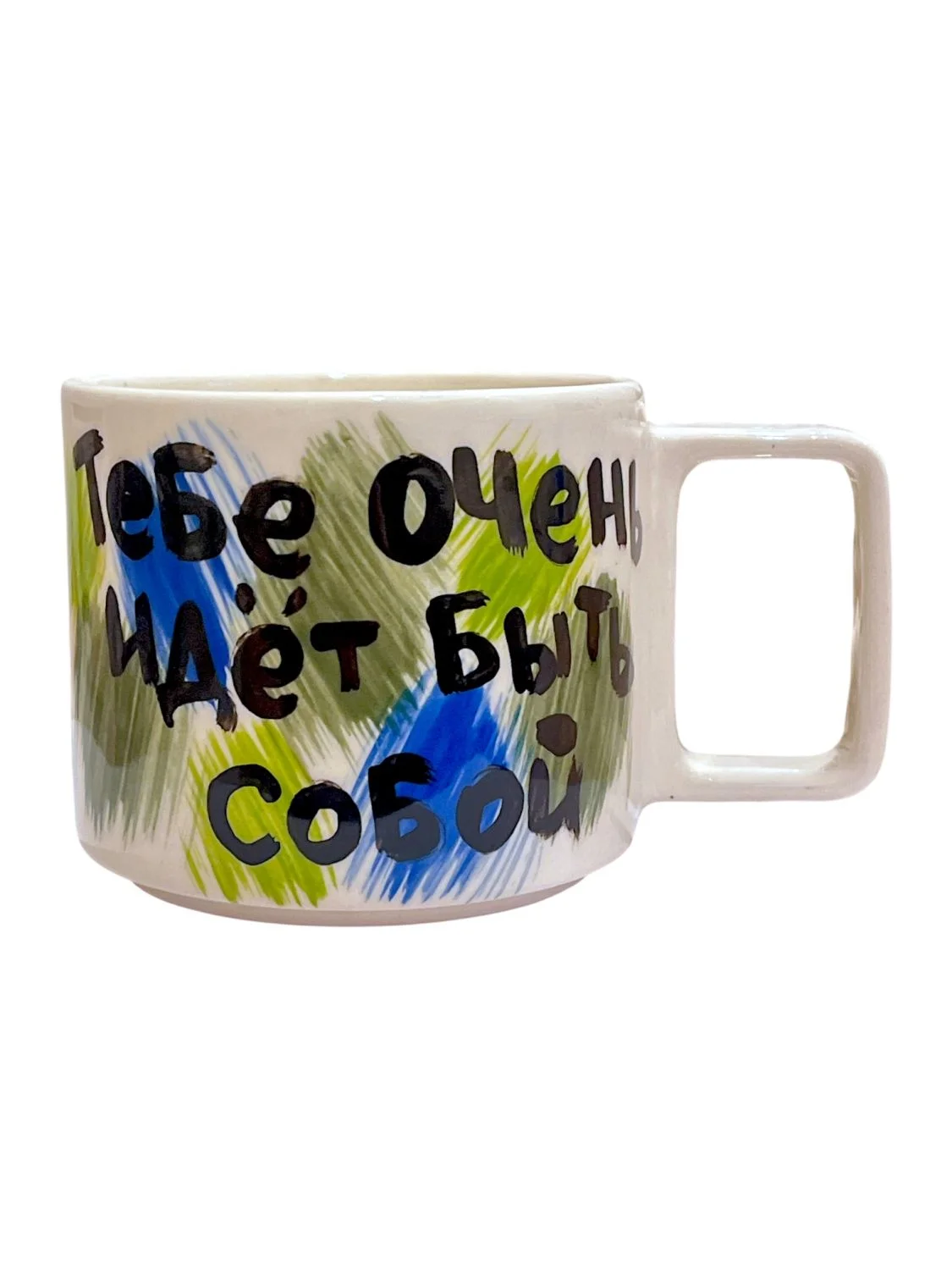 Кружка ручной работы РУКИ В ГЛИНЕ «Тебе очень идёт быть собой», сине-зелёная, керамика, 350 мл