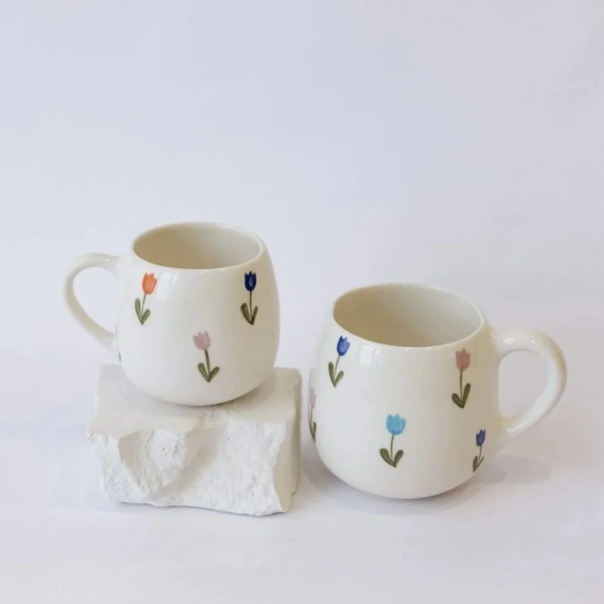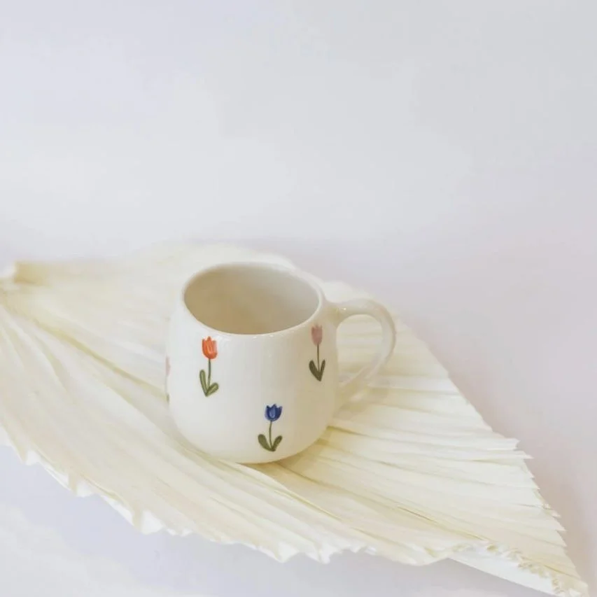 Кружка ручной работы РУКИ В ГЛИНЕ «Тюльпаны», керамика, 400 мл, круглая