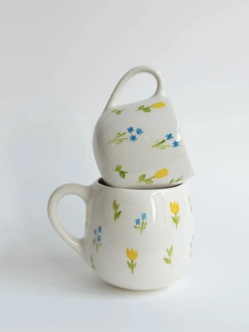 Кружка ручной работы круглая «Весенняя поляна», керамика, 400 мл