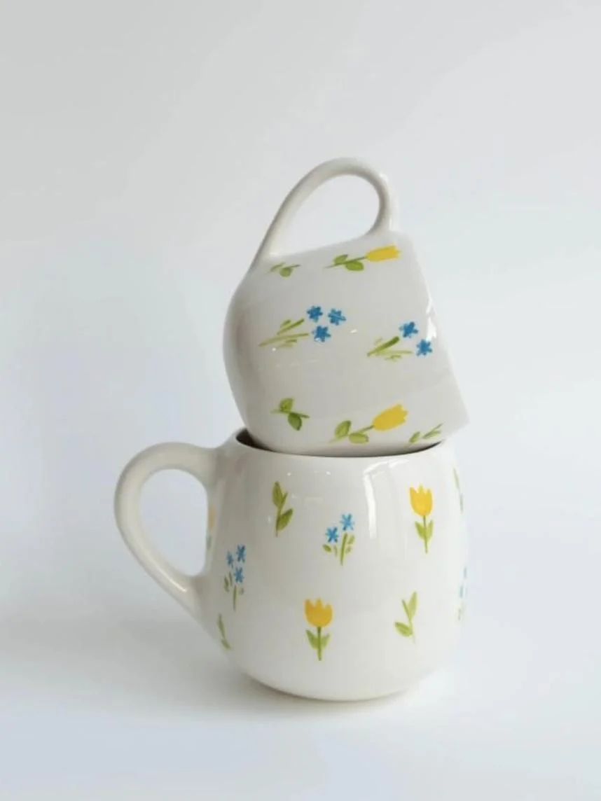 Кружка ручной работы РУКИ В ГЛИНЕ «Весенняя поляна», керамика, 400 мл, круглая