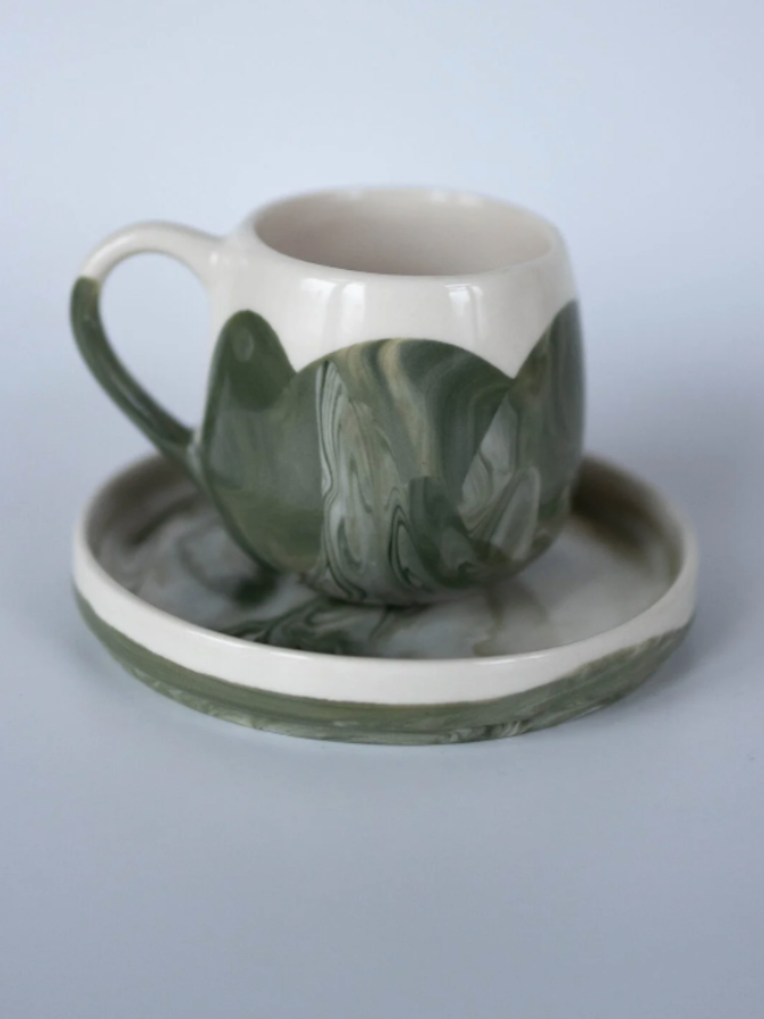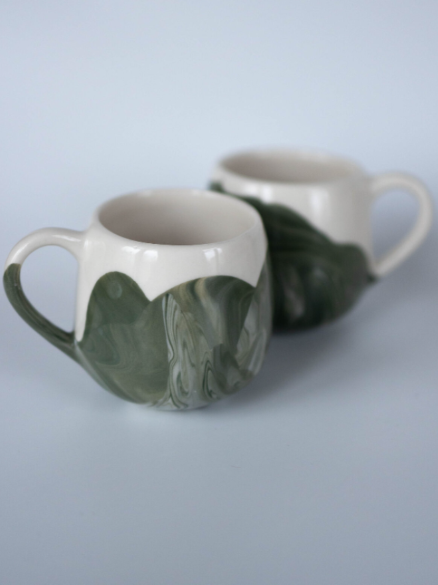 Кружка ручной работы круглая «Зелёный мрамор», керамика, 250 мл