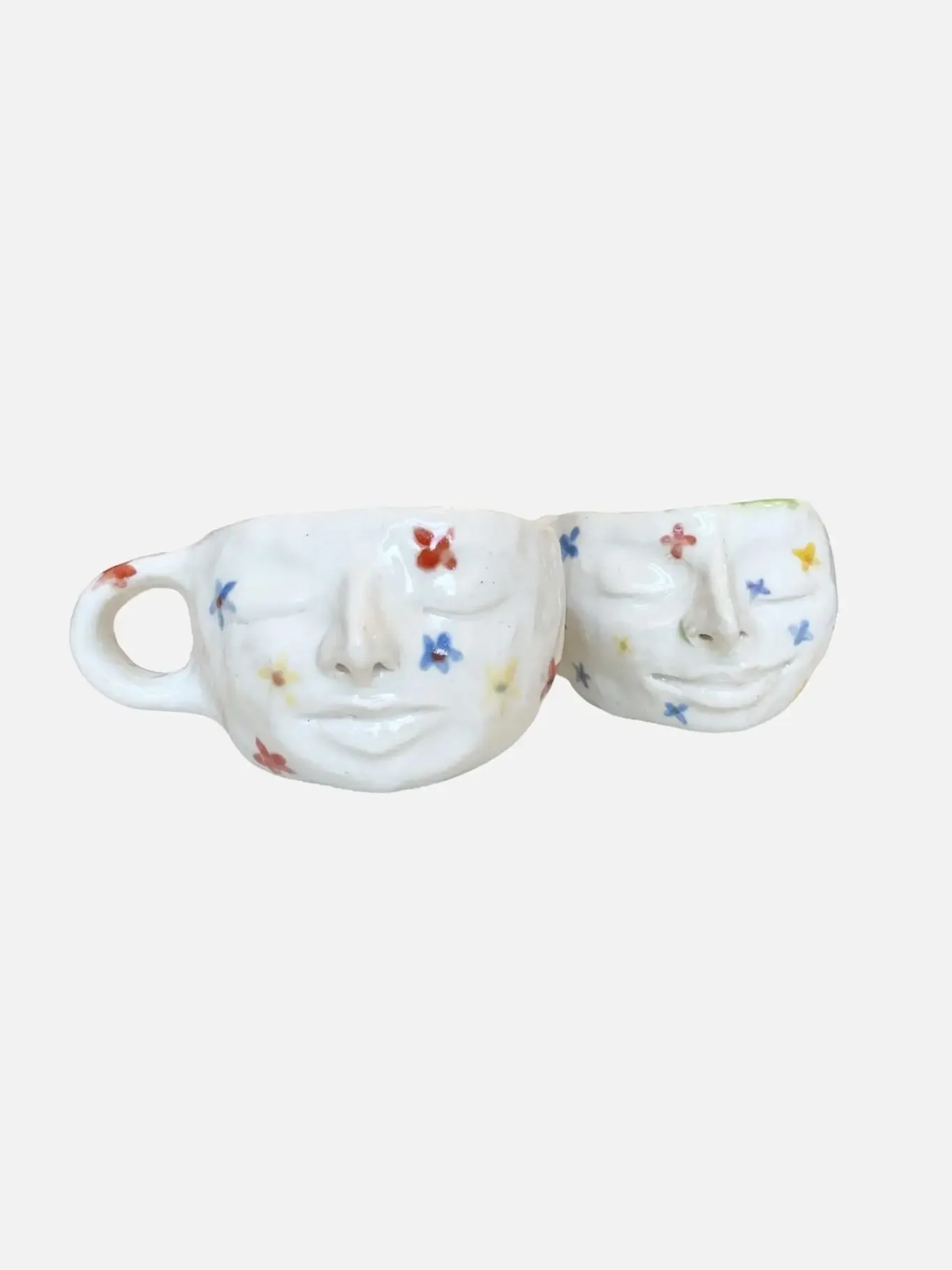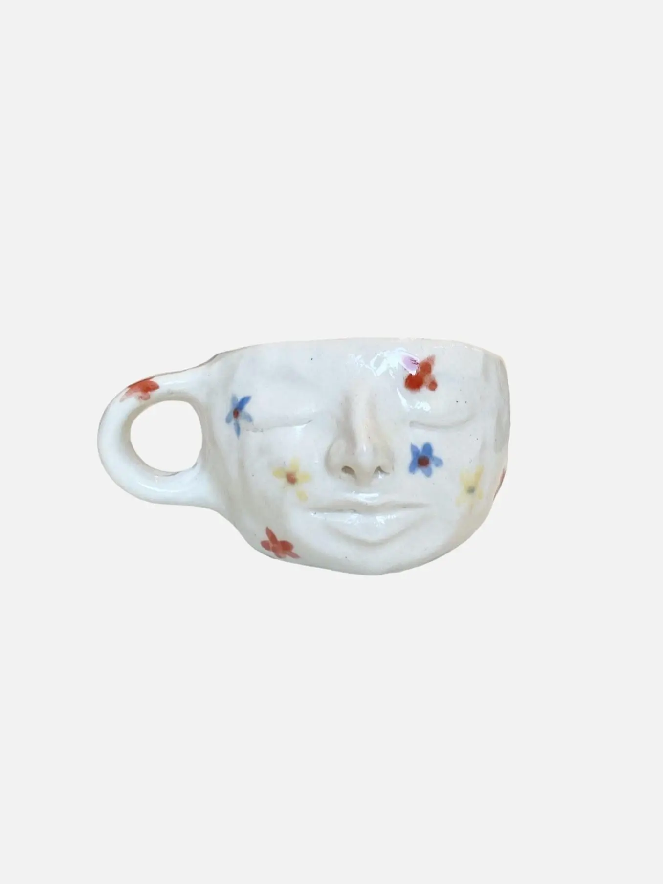 Кружка ручной работы «Лицо» разноцветные цветочки, керамика, 300 мл