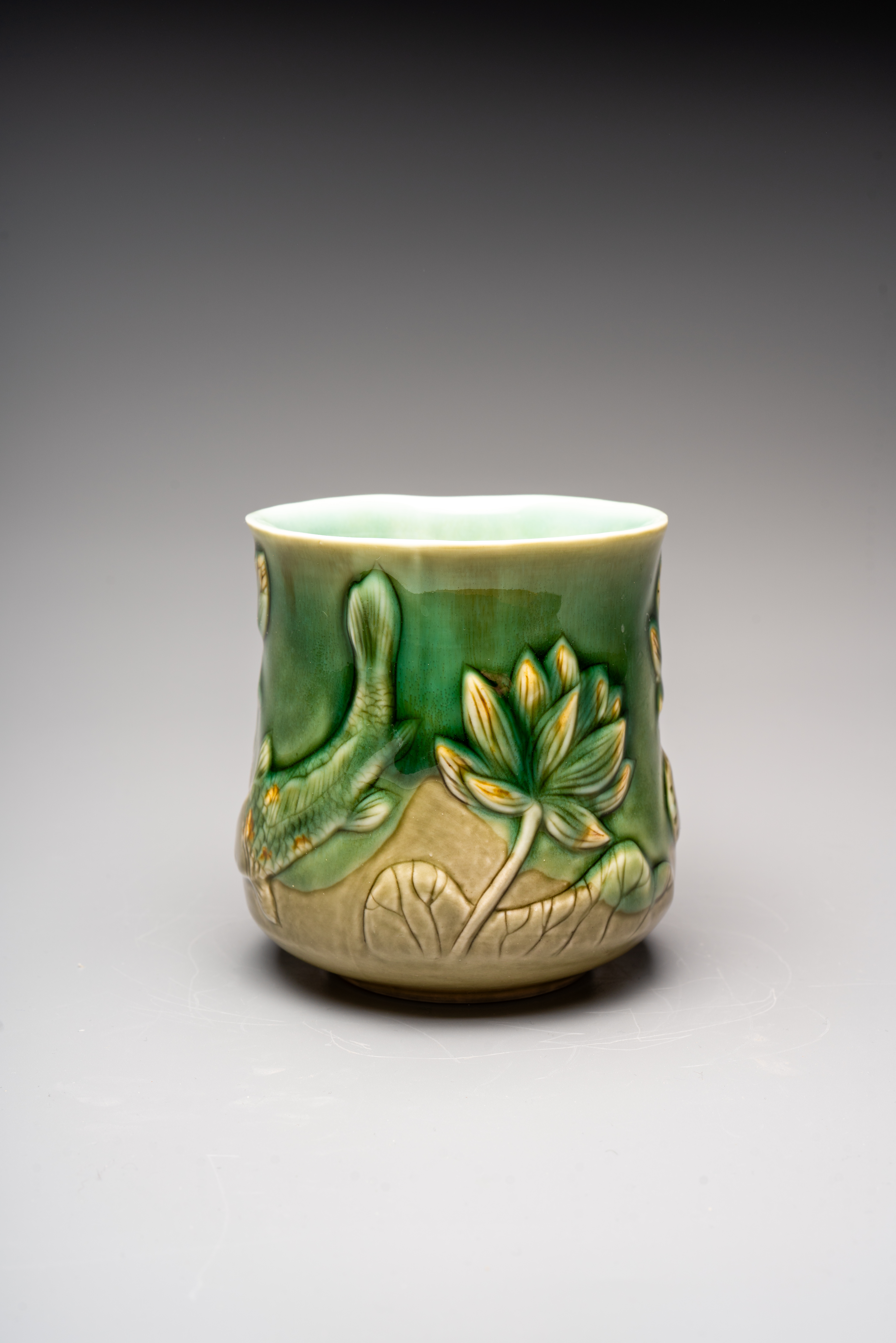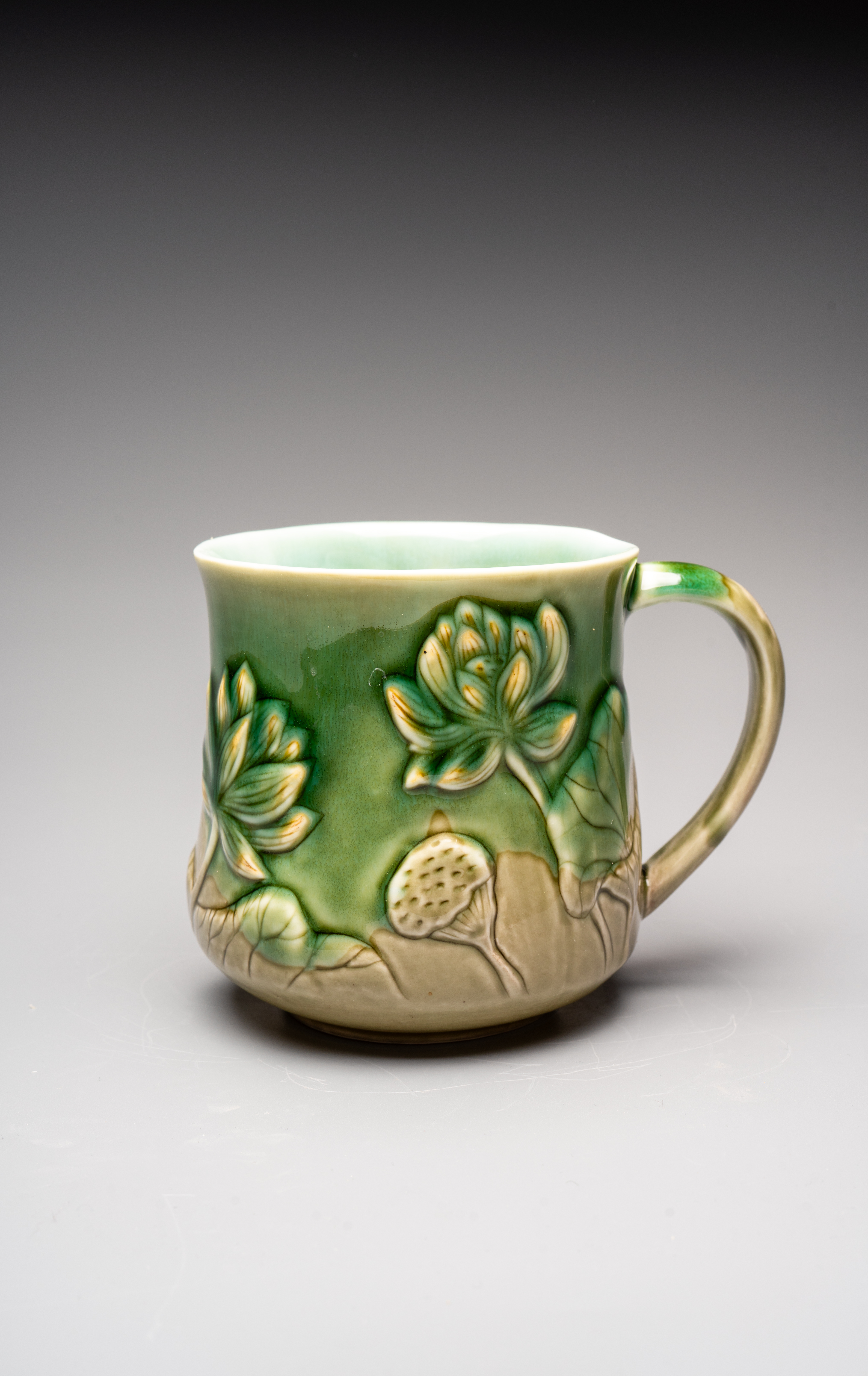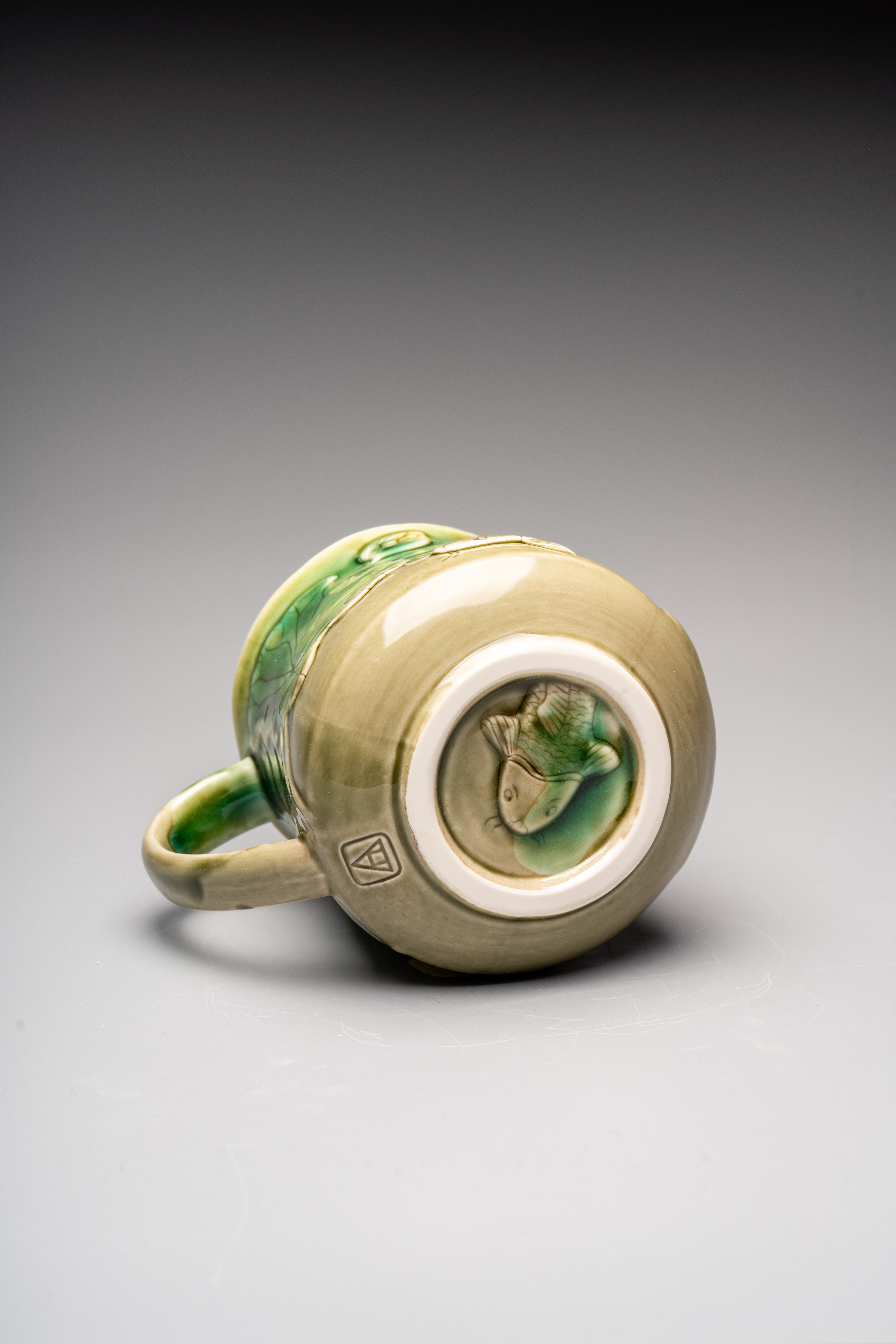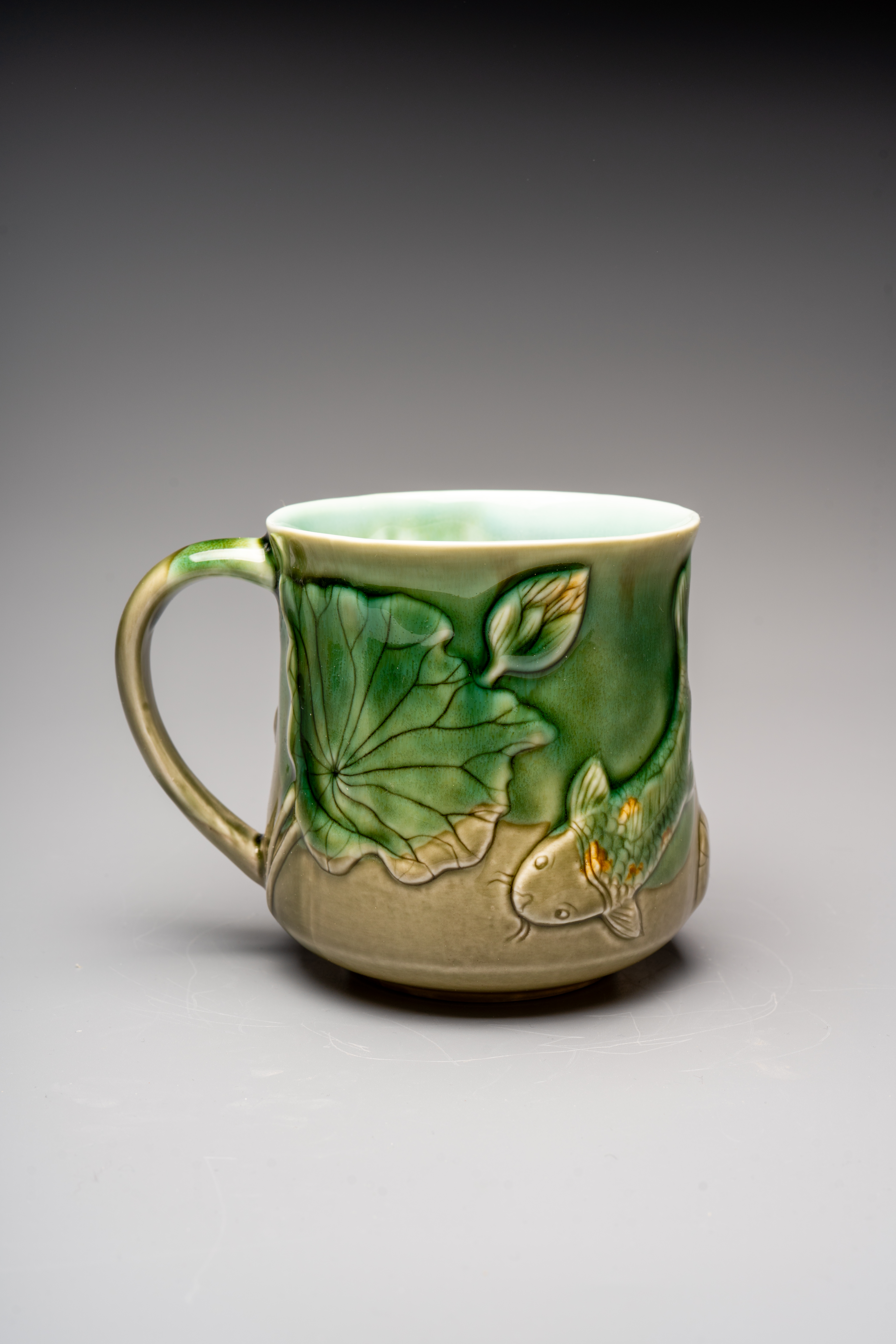 Кружка ручной работы «Лотос и карп», оливковая, фарфор, 430 мл