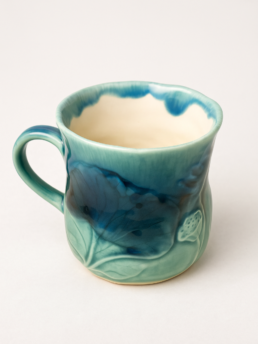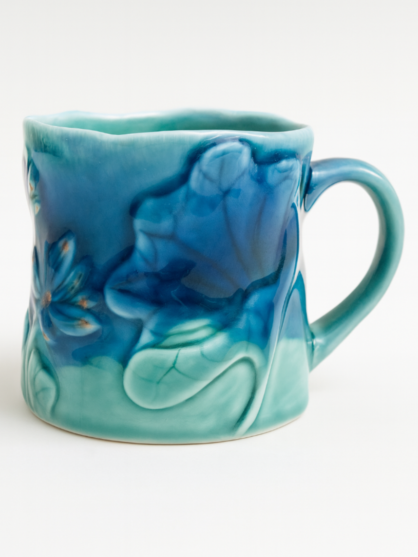 Кружка ручной работы «Лотосы», синяя, фарфор, 350 мл