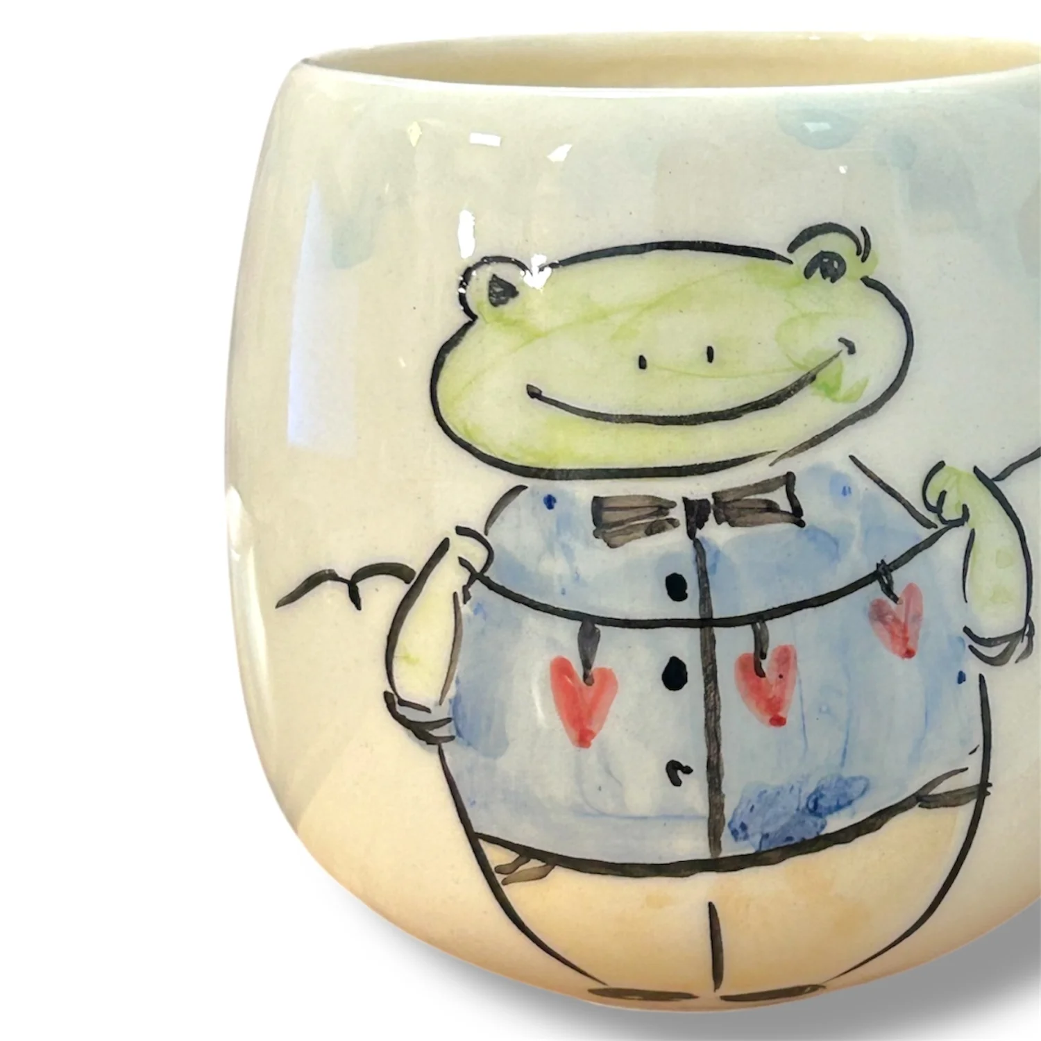 Керамическая кружка ручной работы. Производитель - Nadia Zholobova. Кружка ручной работы выполнена из керамики. Главной особенностью этой кружки является её уникальный дизайн - рисунок лягушки, добавляющий ему особого шарма. Такая кружка станет прекрасным дополнением к любому интерьеру и будет радовать своего обладателя не только внешним видом, но и практичностью.