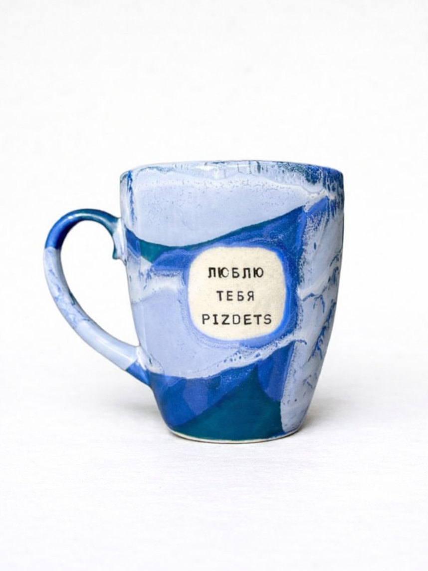 Кружка ручной работы NF ceramics «Люблю тебя, p***ets», синяя, керамика, 400 мл