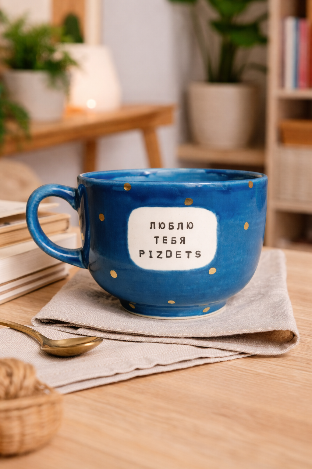Кружка ручной работы NF ceramics «Люблю тебя, p***ets», синяя, керамика, 600 мл