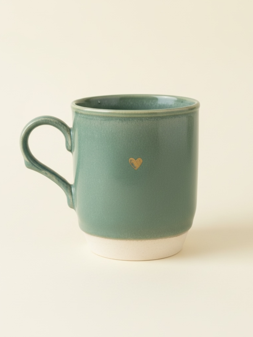 Кружка ручной работы Мастерская Виктории Нор «Сердечко», мятная, керамика, 200 мл