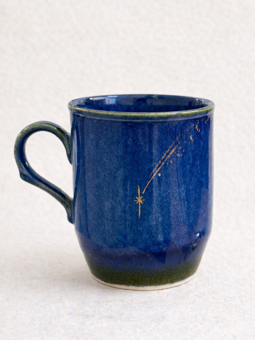 Кружка ручной работы Мастерская Виктории Нор «Звездопад», лазурная, керамика, 200 мл