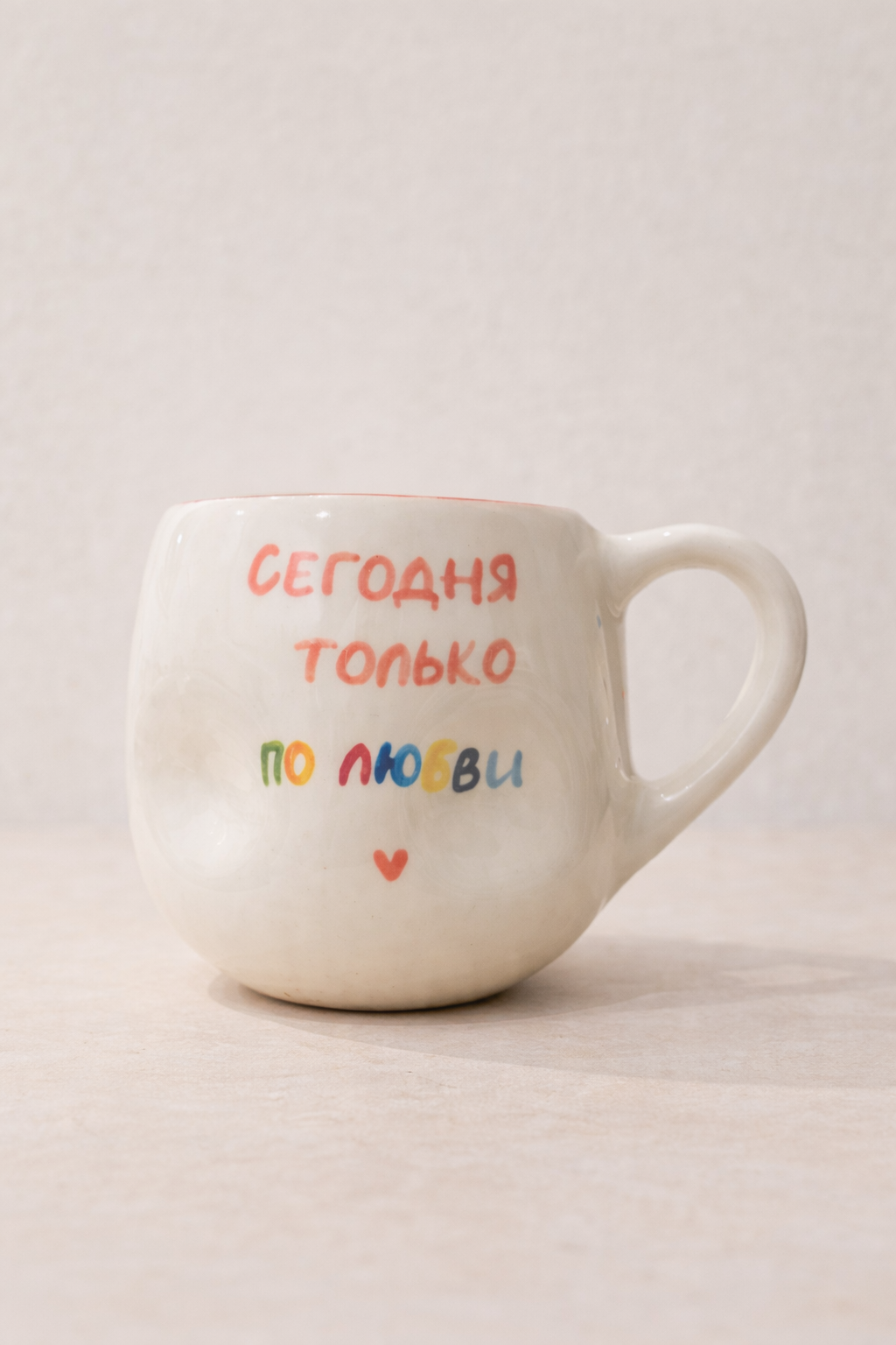Кружка ручной работы мятая Hands in clay «Сегодня только по любви», розовая, керамика, 400 мл