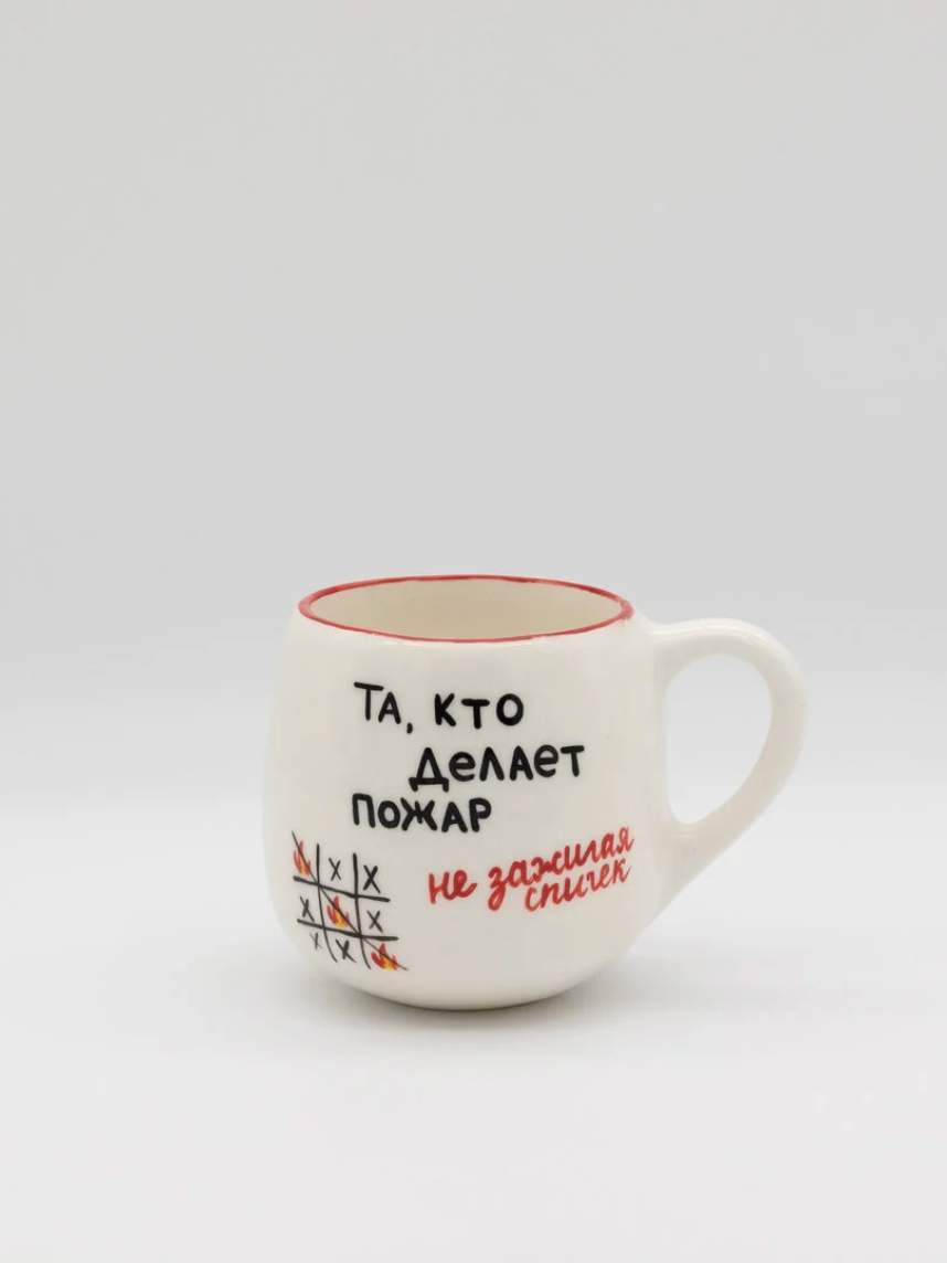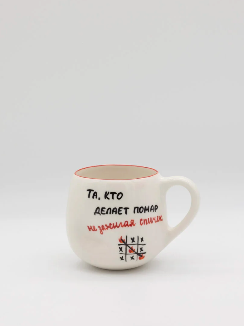 Кружка ручной работы мятая Hands in clay «Та, кто делает пожары», белая, керамика, 400 мл