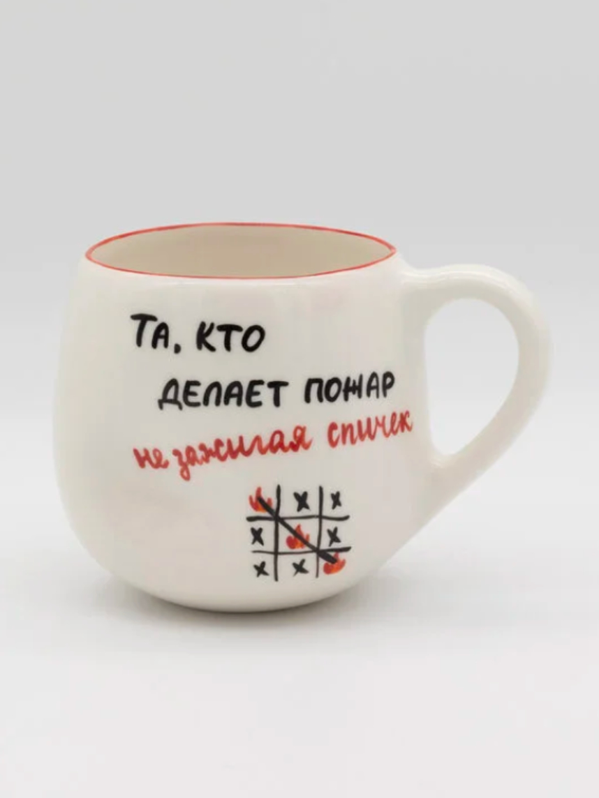 Кружка ручной работы РУКИ В ГЛИНЕ «Та, кто делает пожары», белая, керамика, 400 мл, мятая