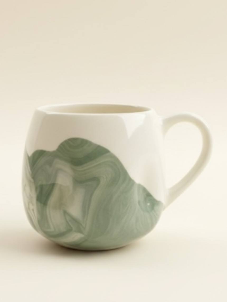 Кружка ручной работы мятая Hands in clay «Зелёный мрамор», керамика, 250 мл