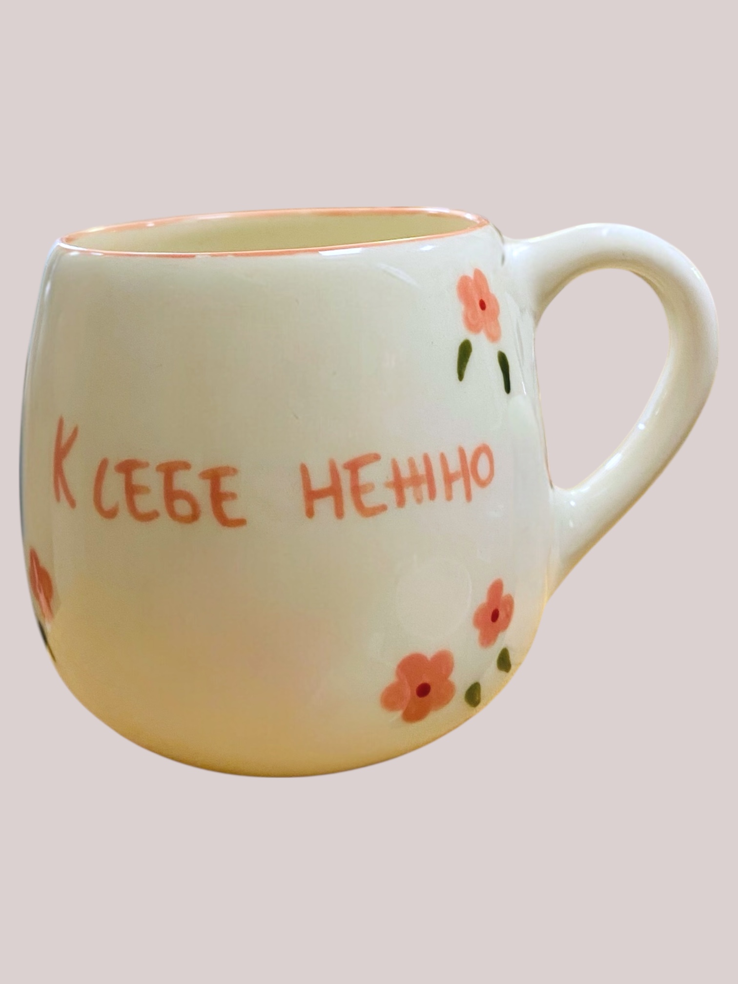 Кружка ручной работы мятая «К себе нежно», керамика, 400 мл