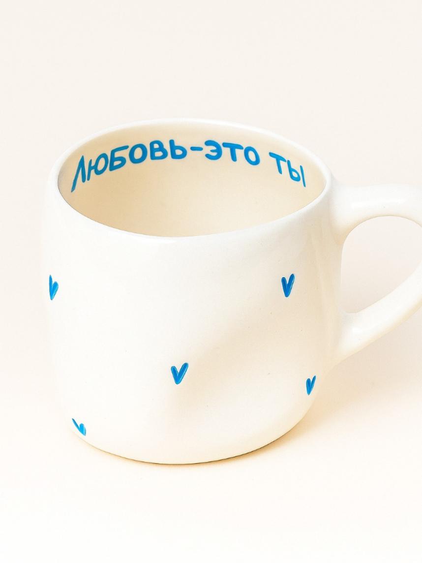 Кружка ручной работы мятая «Любовь - это ты», голубая, керамика, 250 мл