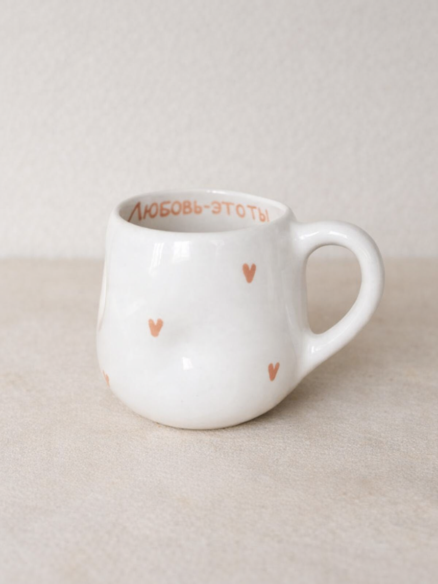 Кружка ручной работы мятая «Любовь - это ты», розовая, керамика, 250 мл