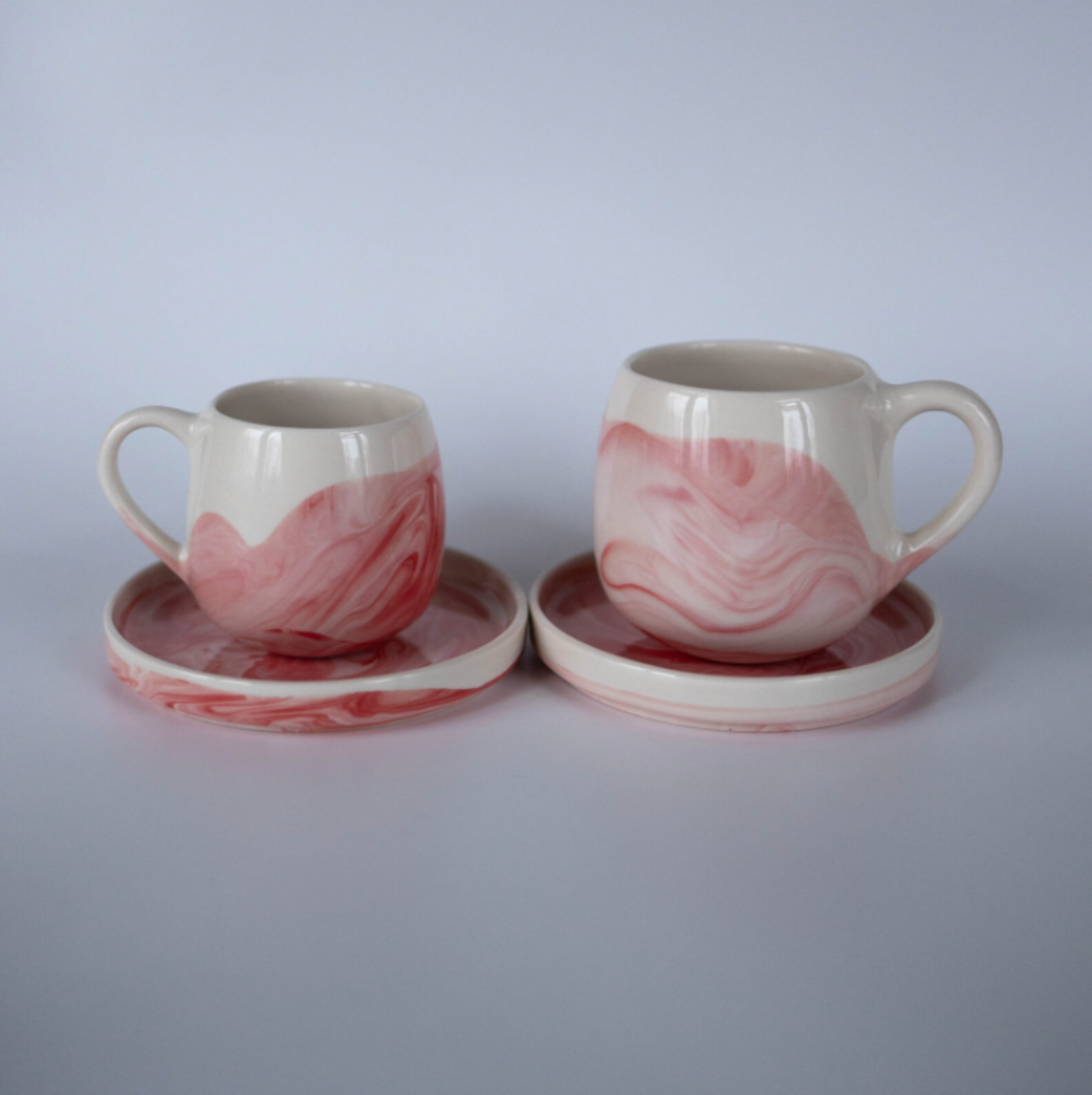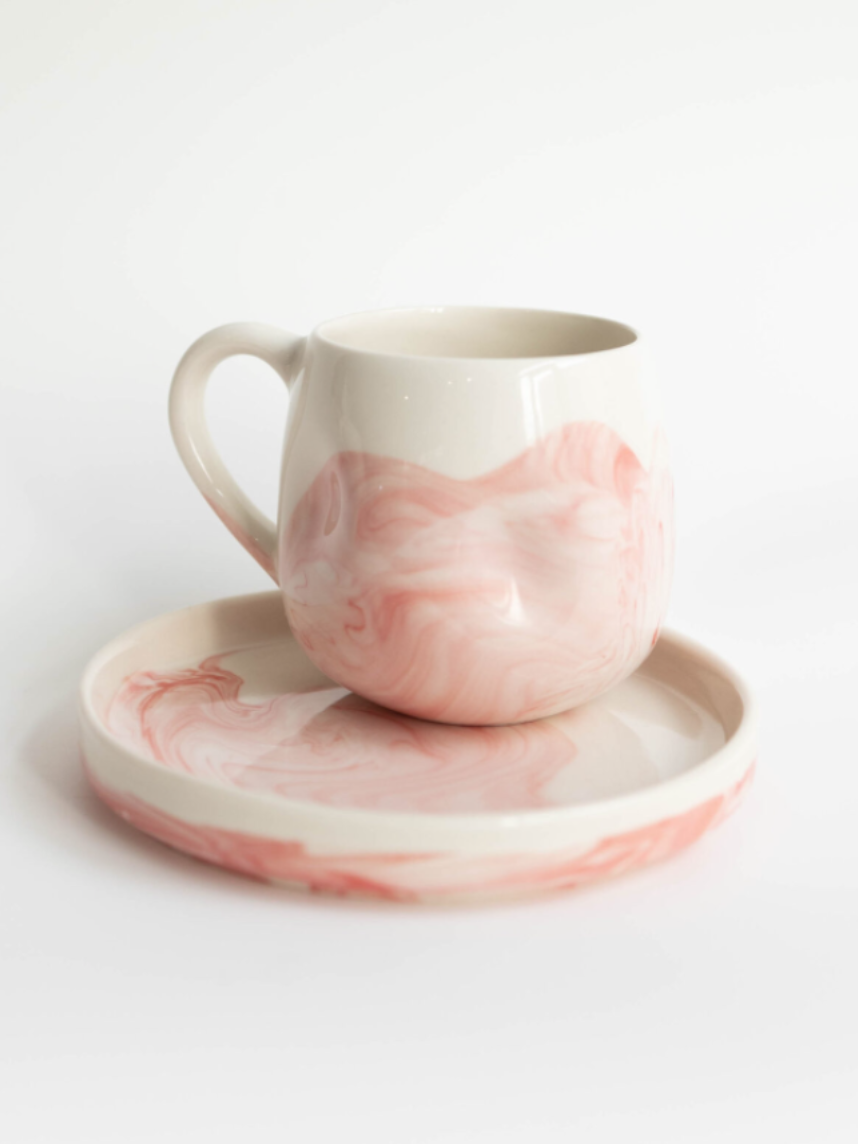 Кружка ручной работы мятая «Розовый мрамор», керамика, 250 мл