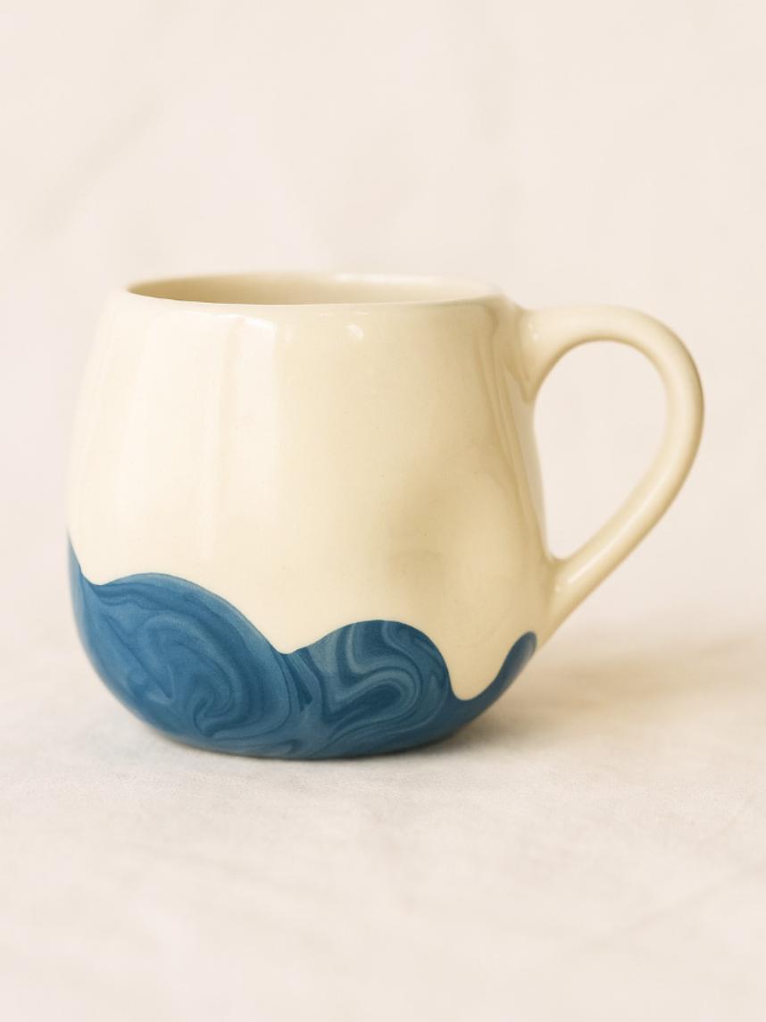 Кружка ручной работы мятая «Синий мрамор», керамика, 250 мл
