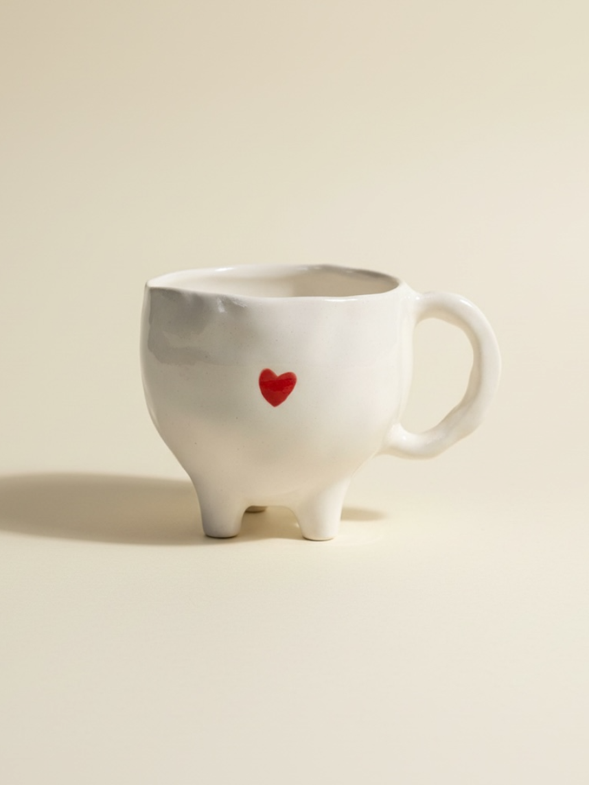 Ножки придают кружке изысканность и удобство в использовании, а рельефная фигурка добавляет объёма и оригинальности, делая эту вещь идеальной для любителей необычной посуды и сельского стиля.