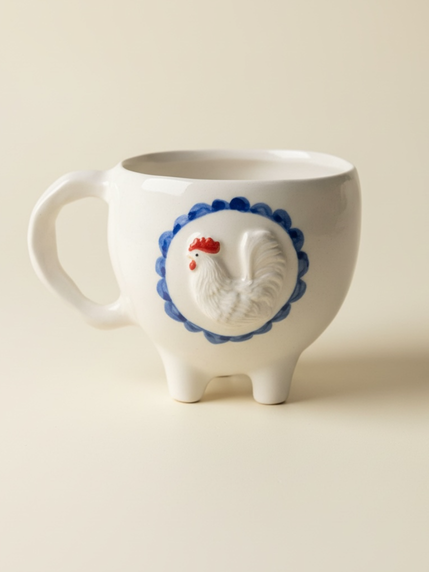 Очаровательная кружка на ножках с объёмным изображением курочки — настоящий символ уюта и деревенского тепла,  от петербургского бренда- Быкова керамика.