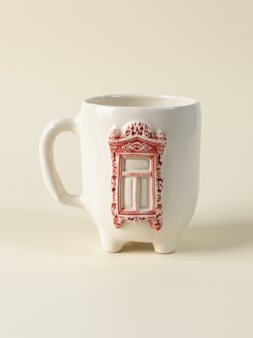 Кружка ручной работы на ножках Быкова керамика «Окно с красными ставнями», 250 мл
