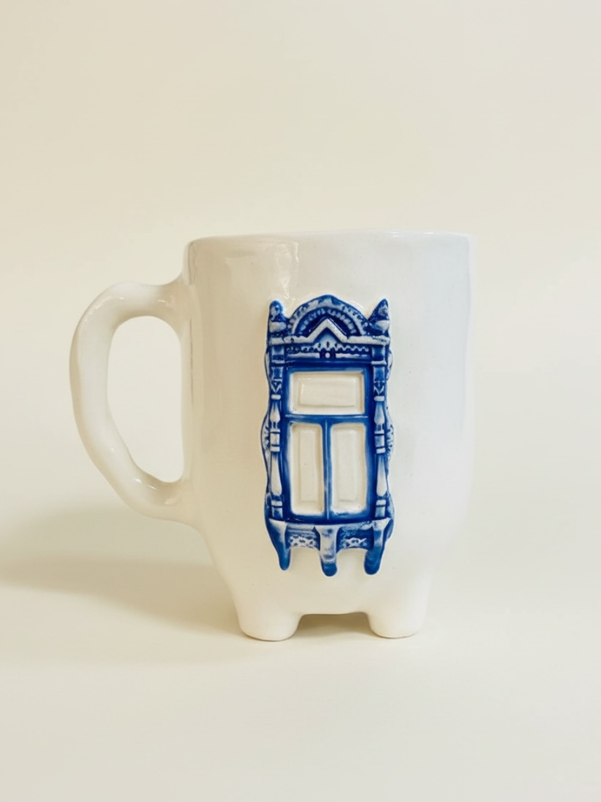 Кружка ручной работы на ножках Быкова керамика «Окно с синими ставнями» № 1, керамика, 250 мл