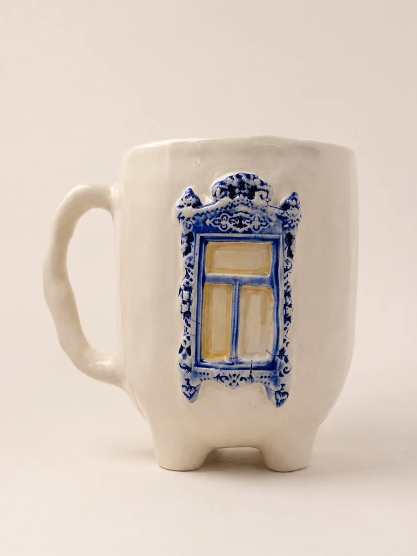 Кружка ручной работы на ножках Быкова керамика «Окно с синими ставнями» № 3, керамика, 250 мл