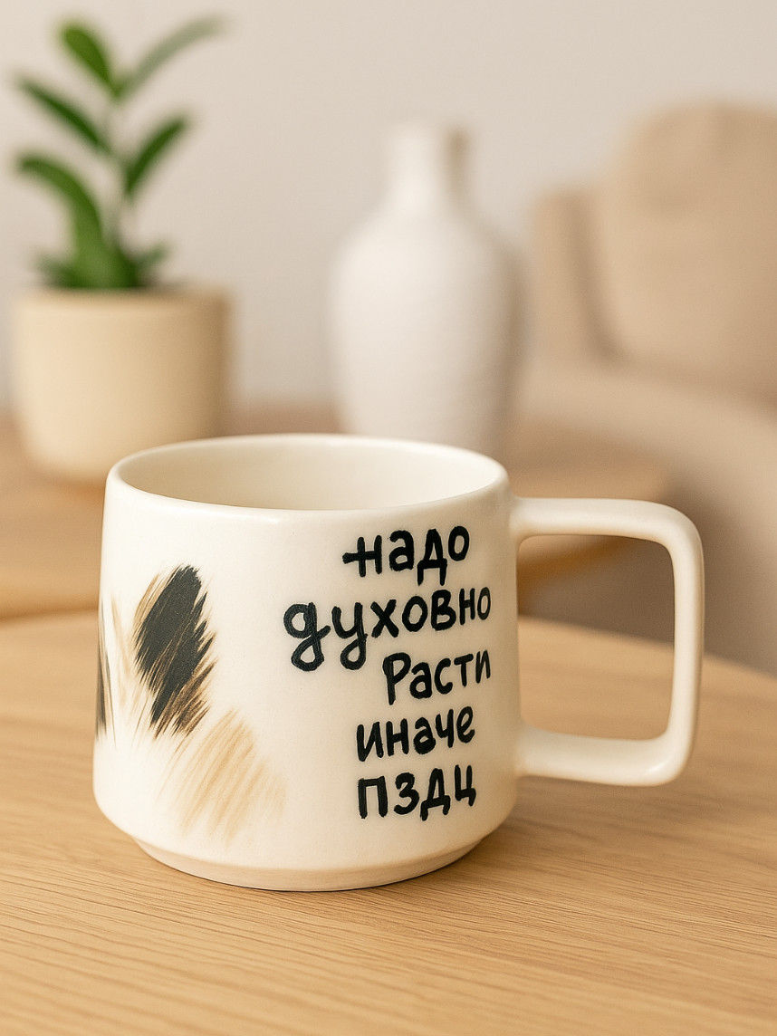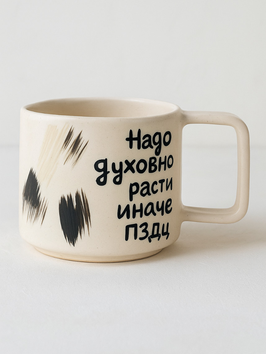 Кружка ручной работы «Надо духовно расти, иначе пздц», керамика, 450 мл