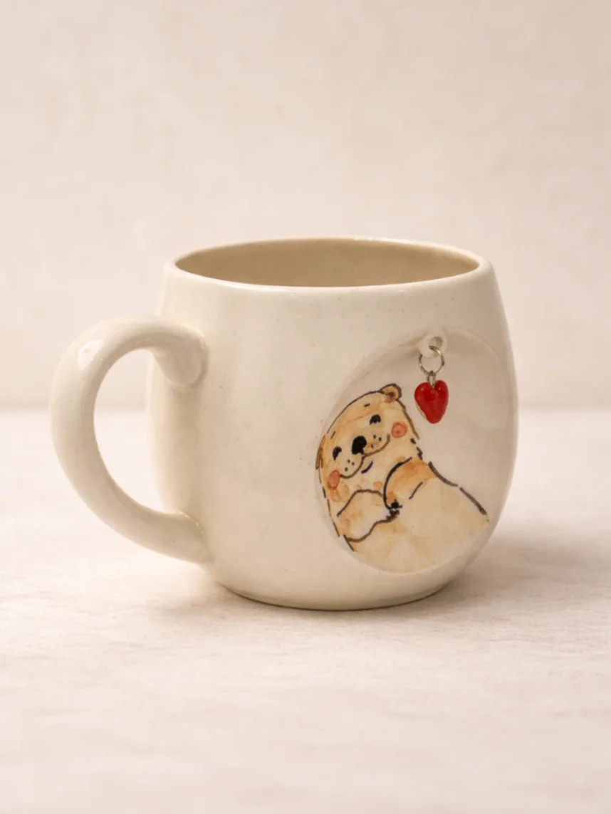 Кружка ручной работы НАДО ЖЕ с подвеской сердечком и росписью «Выдра», белая, керамика, 250 мл