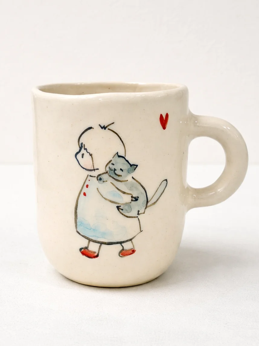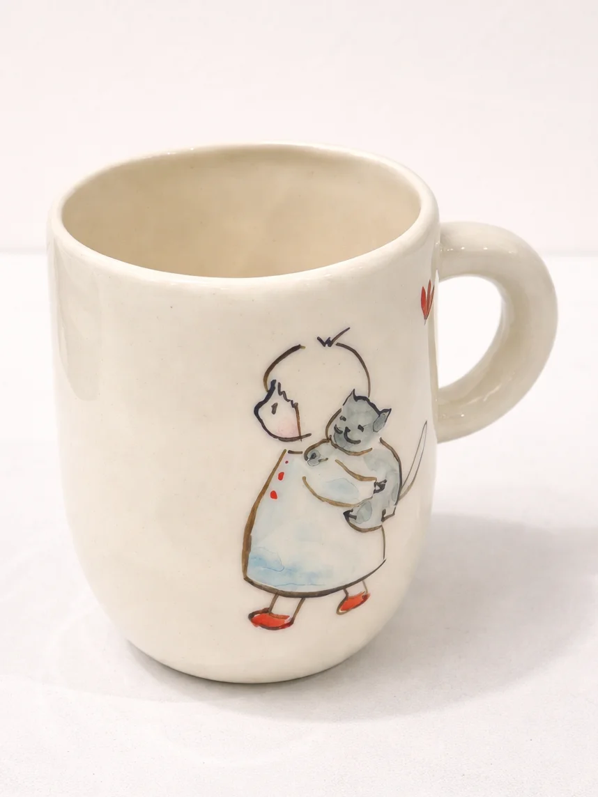 Кружка ручной работы НАДО ЖЕ с росписью «Девочка с котиком», белая, керамика, 300 мл