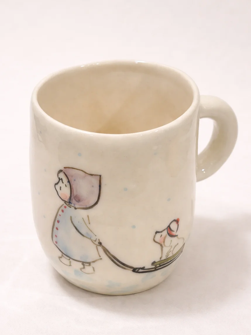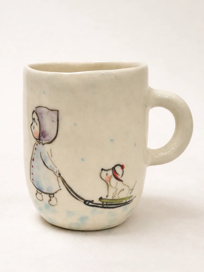 Кружка ручной работы НАДО ЖЕ с росписью «Девочка с собачкой на санках», белая, керамика, 300 мл