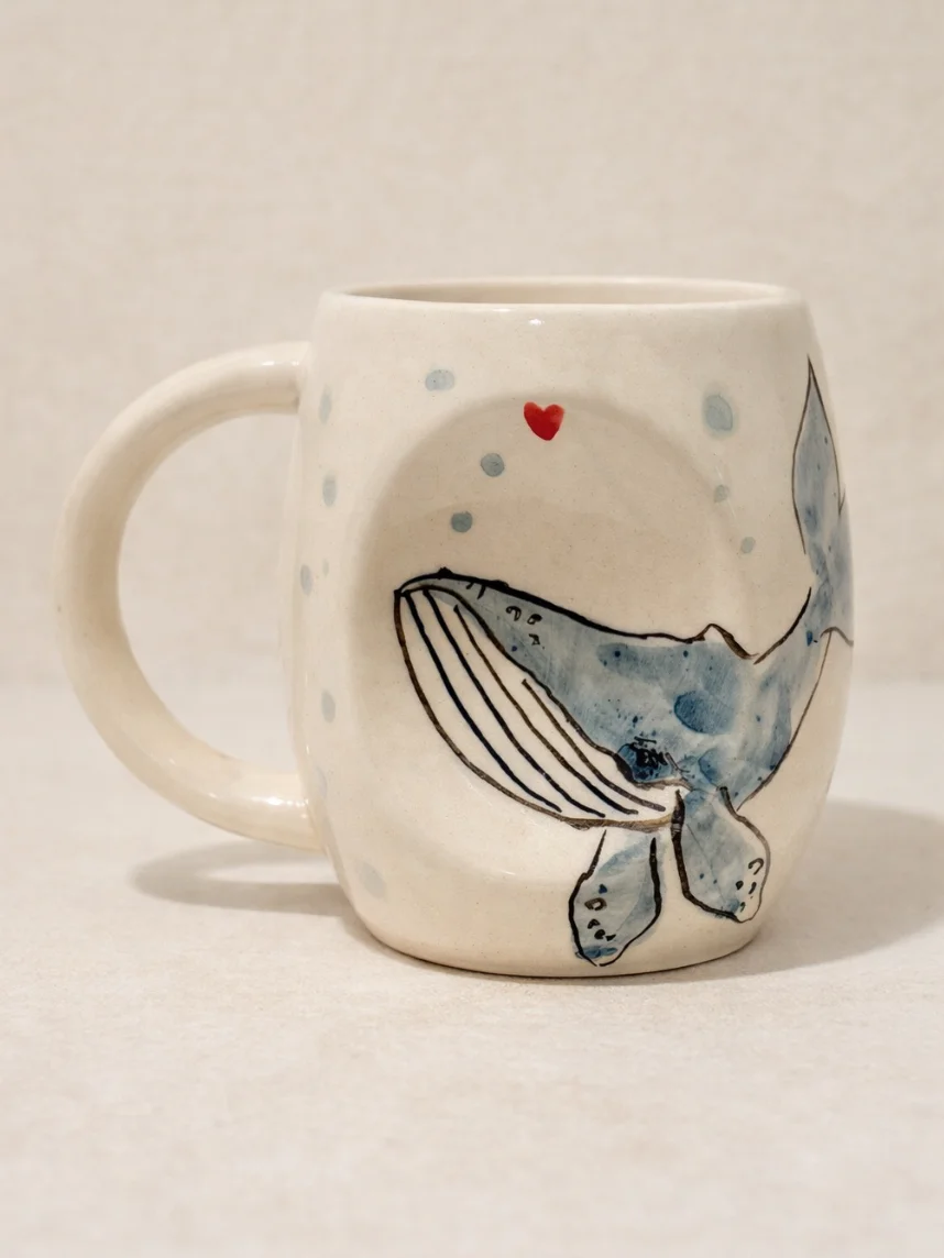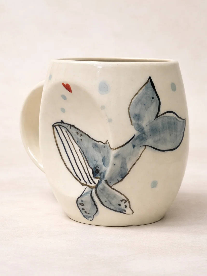Кружка ручной работы НАДО ЖЕ с росписью «Кит», белая, керамика, 300 мл