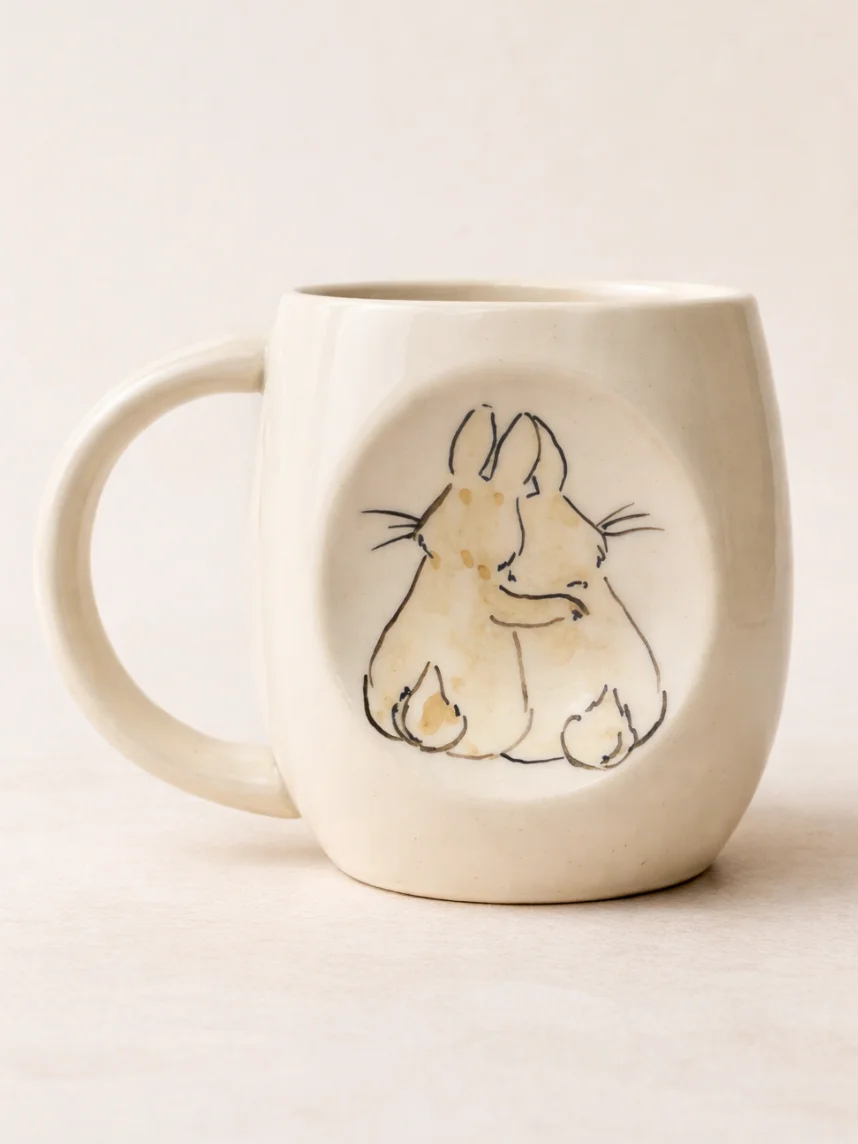 Кружка ручной работы НАДО ЖЕ с росписью «Зайки», белая, керамика, 300 мл