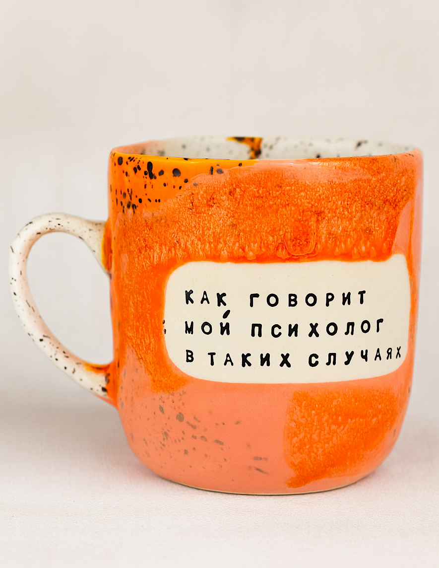 Кружка ручной работы NF ceramics «Как говорит мой психолог..», оранжевая, керамика, 450 мл