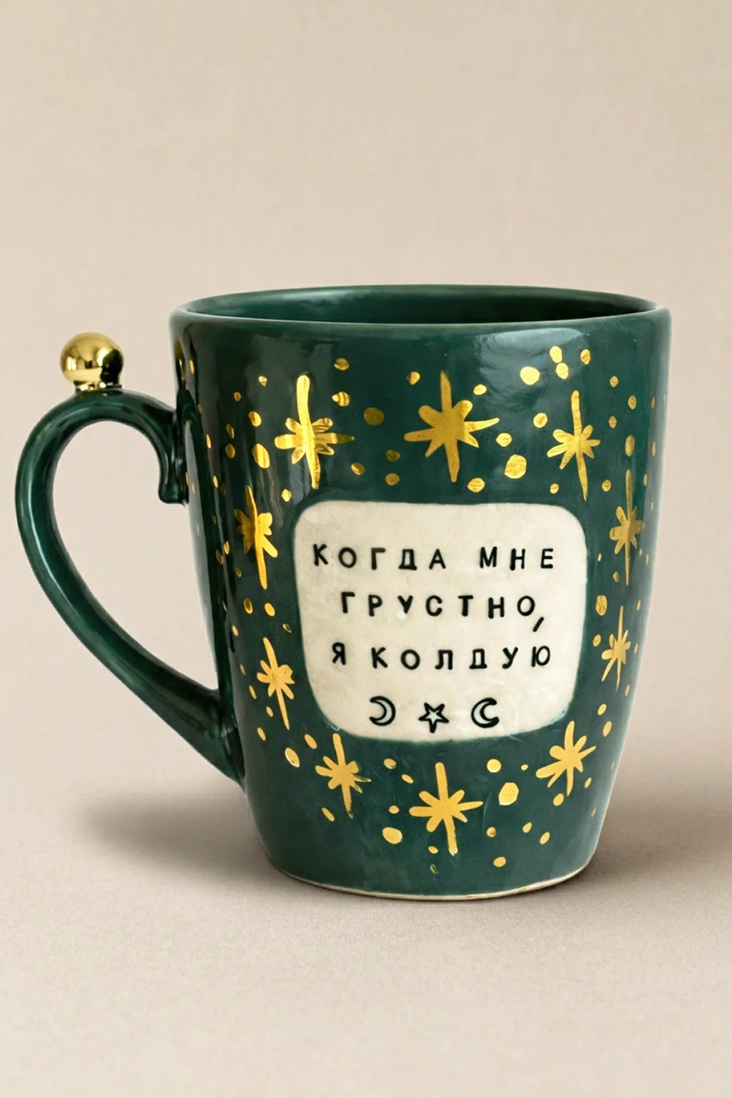 Кружка ручной работы Тата вытворяет/NF ceramics «Когда мне грустно, я колдую», тёмно-зелёная, керамика, 400 мл