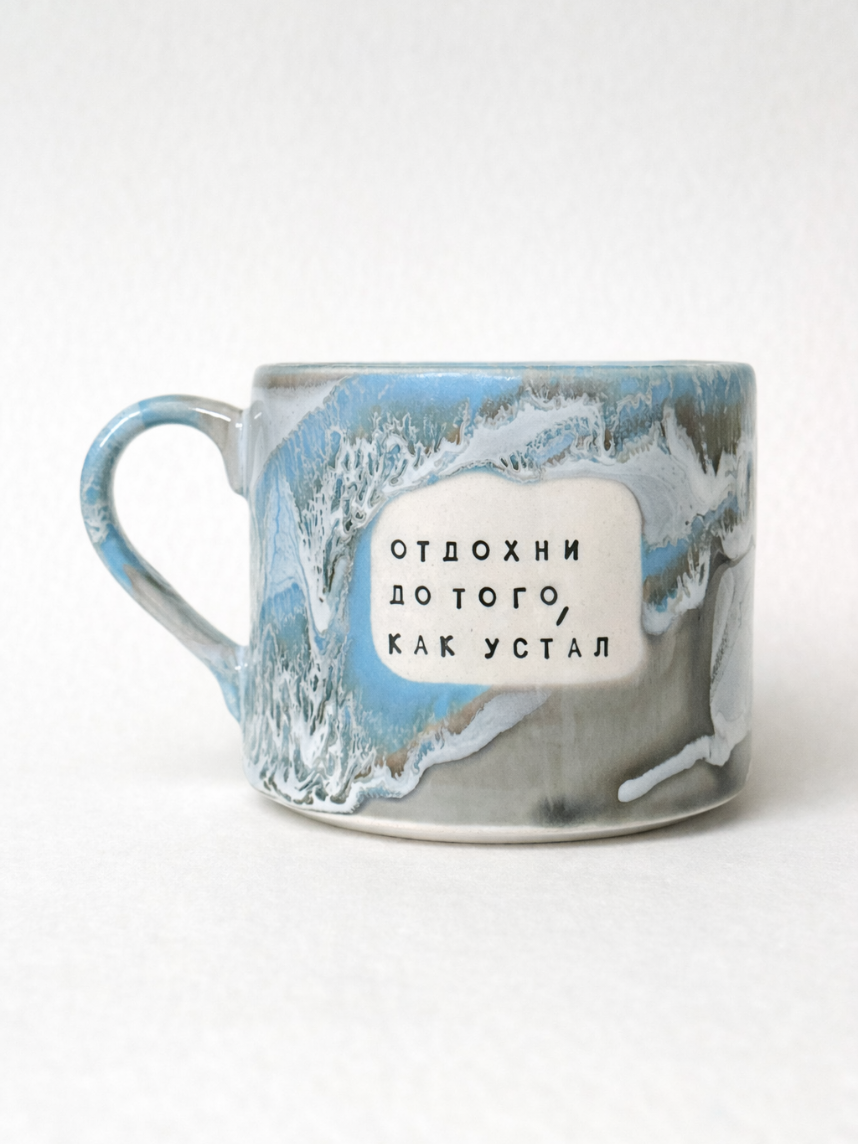 Элегантный серо-голубой цвет и забавная надпись «Отдохни до того, как устал» создают позитивное настроение и вдохновляют заботиться о себе. Каждая кружка создается с любовью и вниманием к деталям, что делает ее уникальной и особенной.