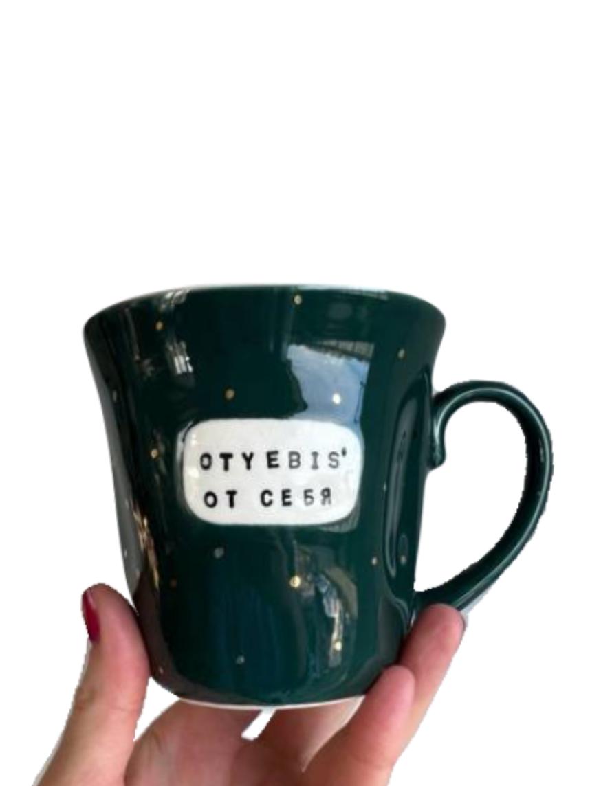 Кружка ручной работы NF ceramics «Oty***s' от себя», темно-зеленая, мятая, керамика, 400 мл