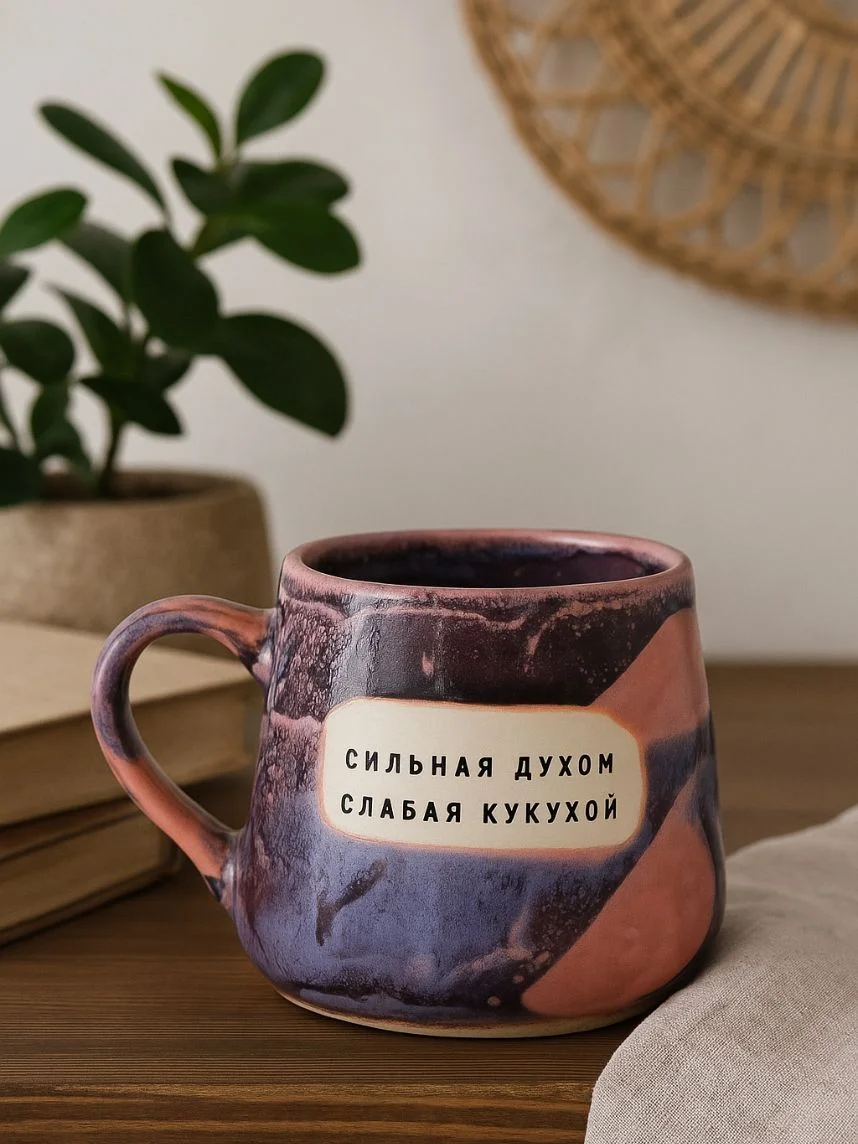 Кружка ручной работы Тата вытворяет/NF ceramics «Сильная духом, слабая кукухой», фиолетовая, керамика, 600 мл