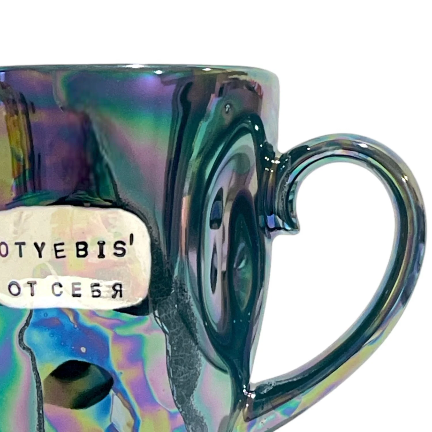 Кружка ручной работы Тата вытворяет/NF ceramics «Oty***s' от себя», перламутровая, мятая, керамика, 400 мл