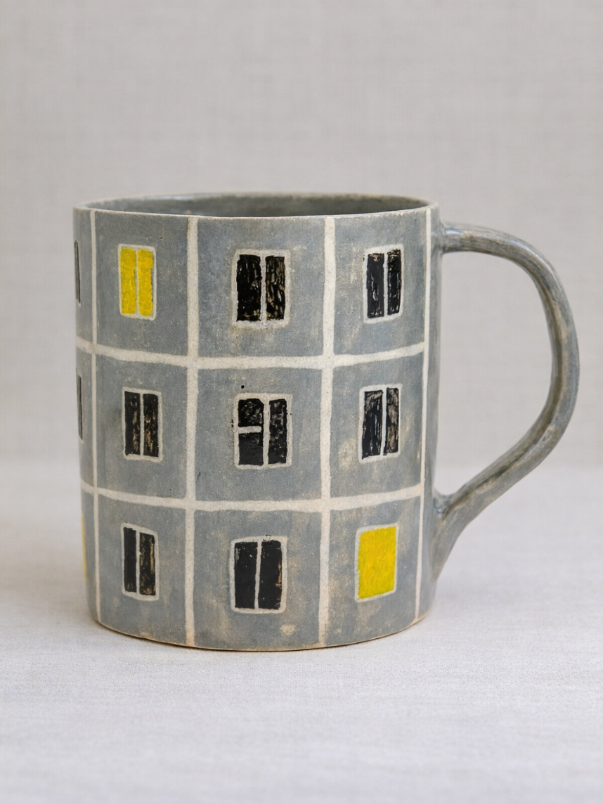 Стильная и уютная кружка «Панелька», созданная вручную из качественной керамики.