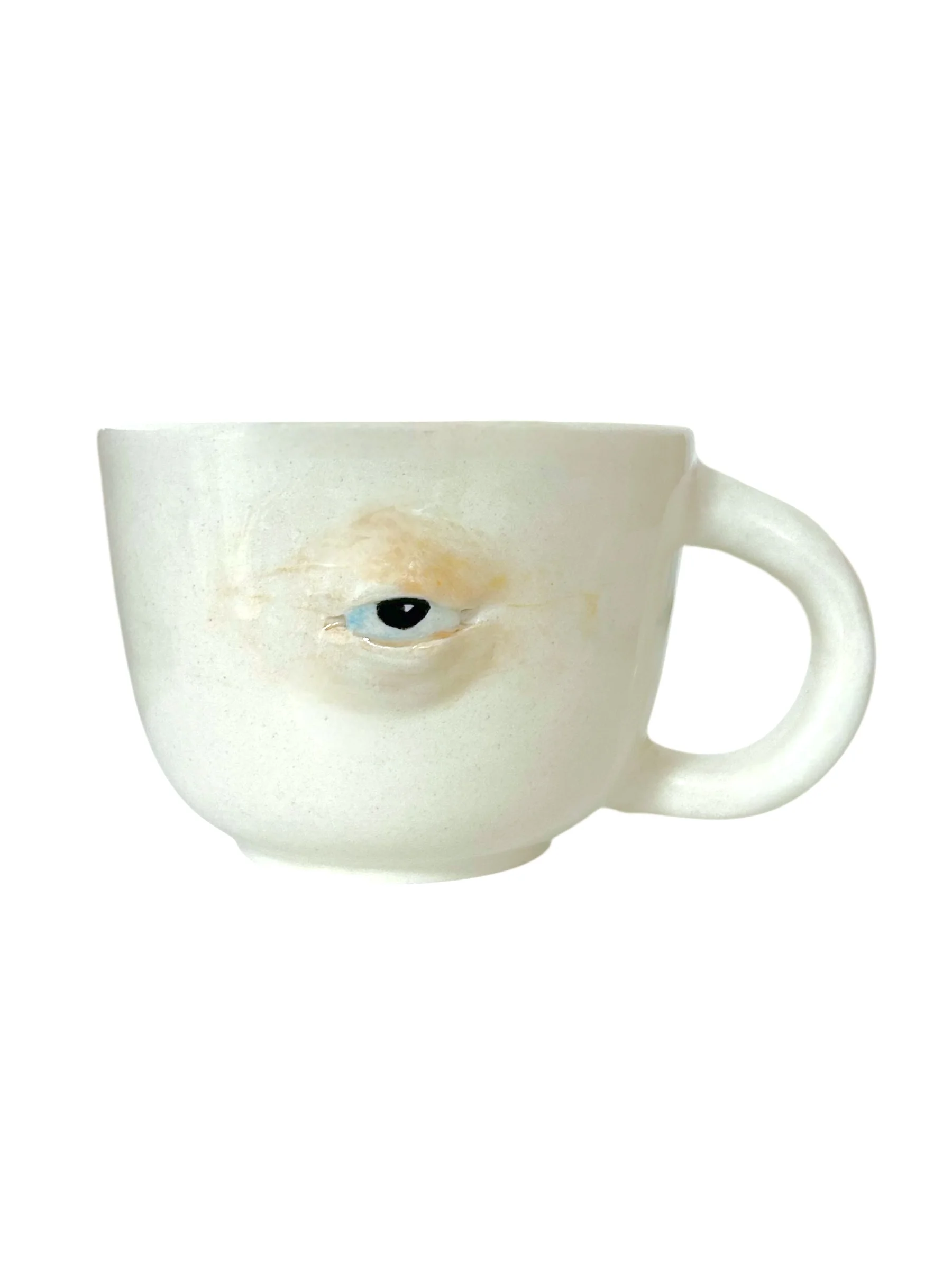 Белая керамическая кружка объемом 300 мл с выразительными объемными глазами.
