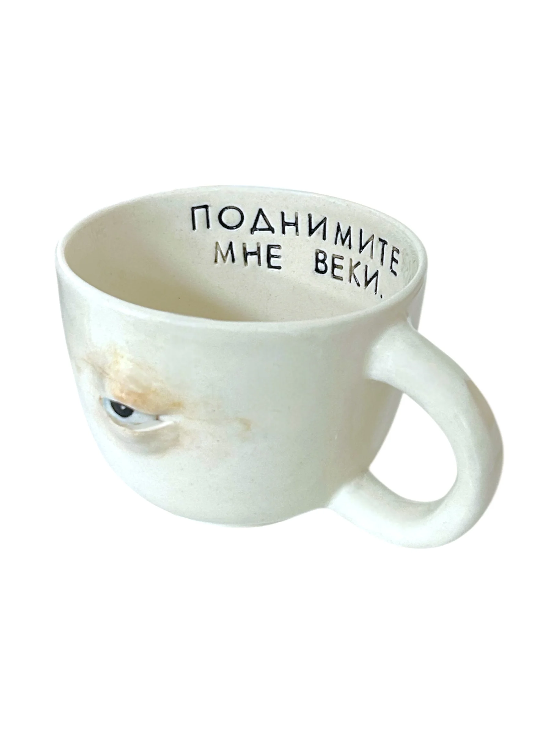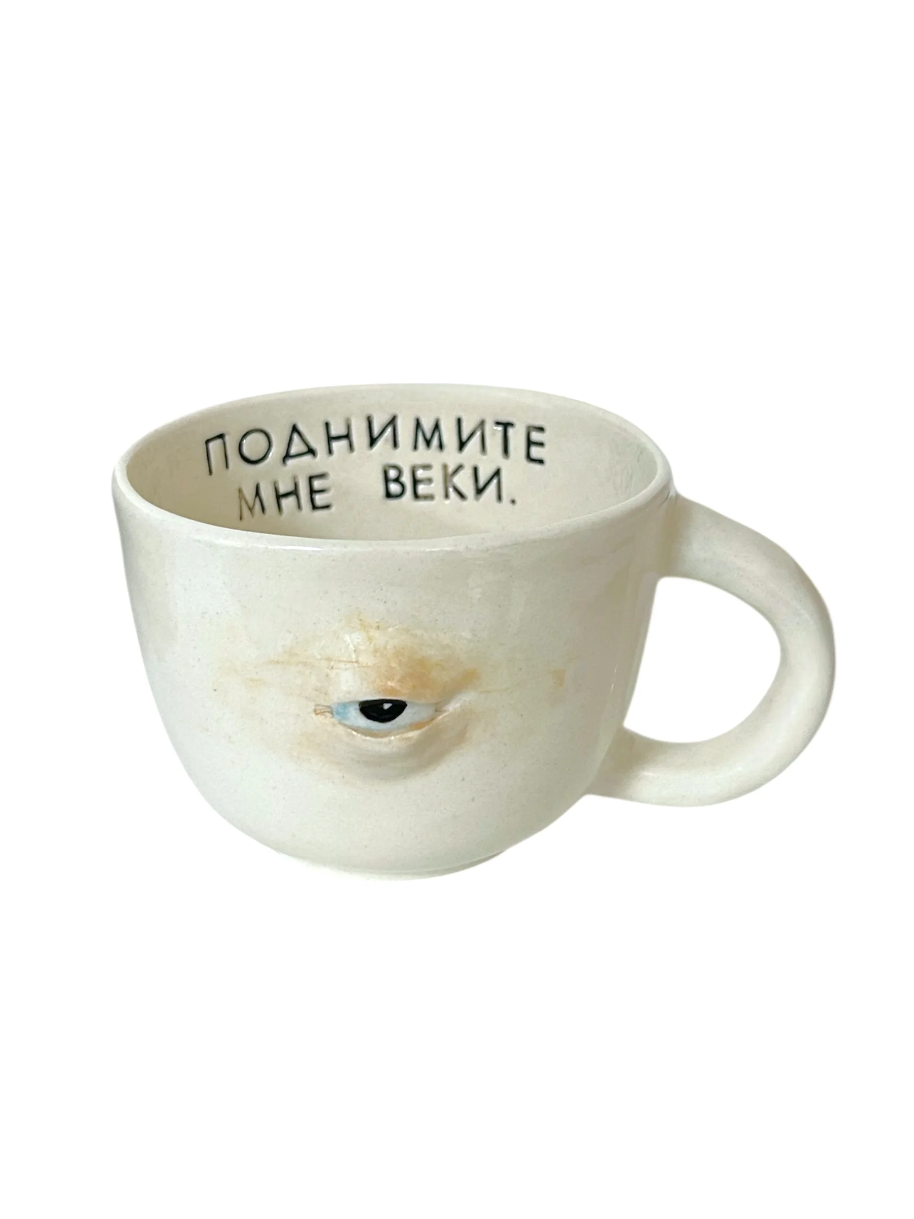 Кружка ручной работы Катя Вебер «Поднимите мне веки», белая, керамика, 300 мл