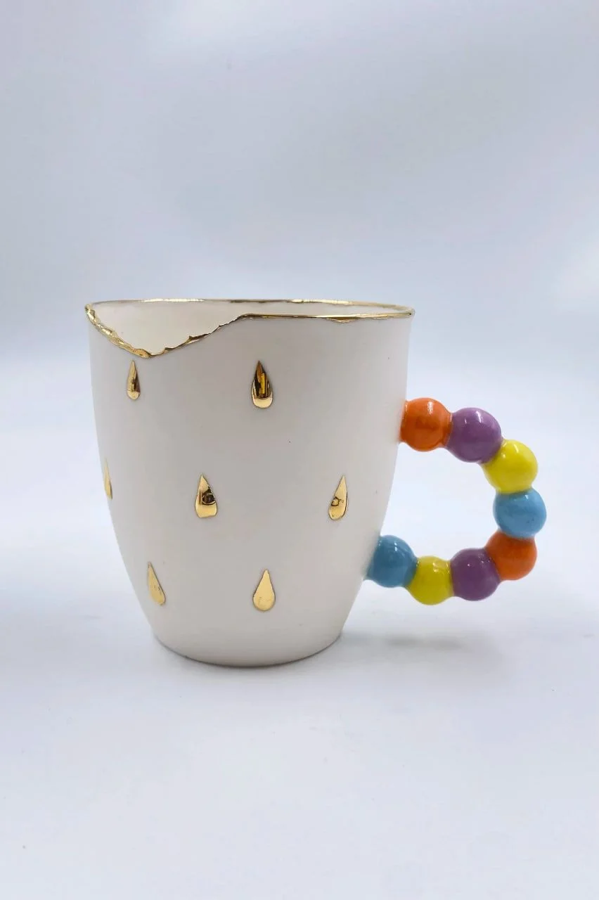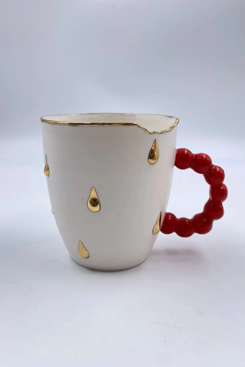 Элегантная фарфоровая кружка с золотыми каплями.  Ручная работа от бренда MMoskvina.