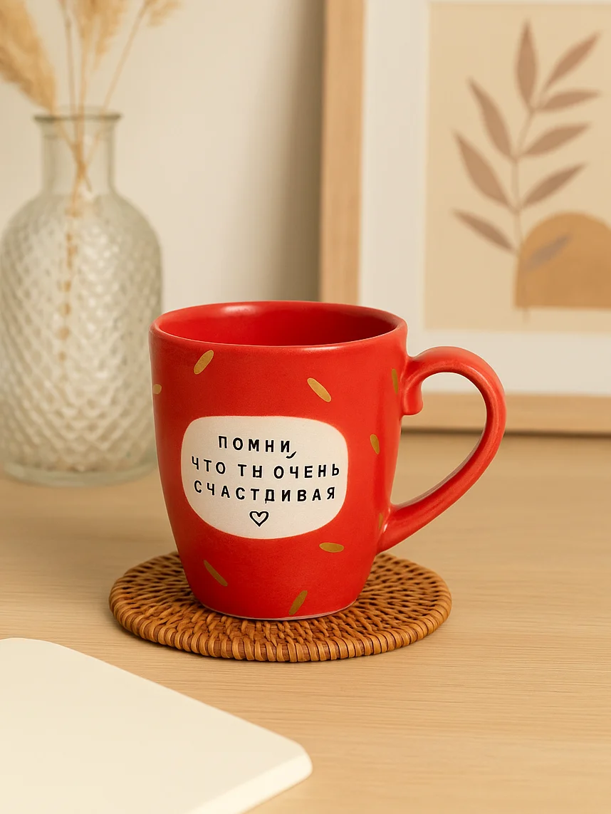 Кружка ручной работы Тата вытворяет/NF ceramics «Помни, что ты очень счастливая», красная, керамика, 400 мл