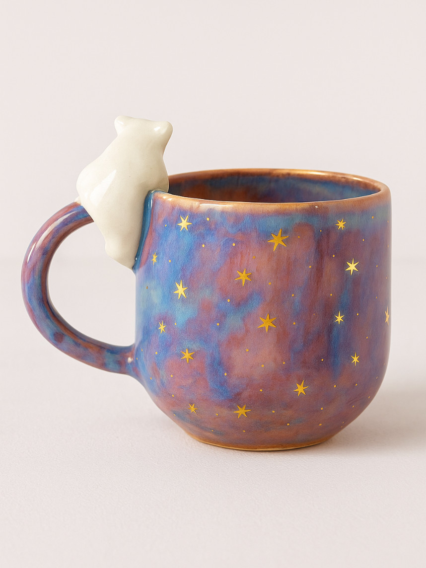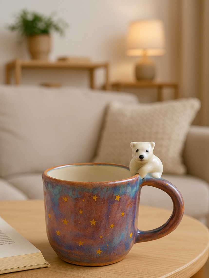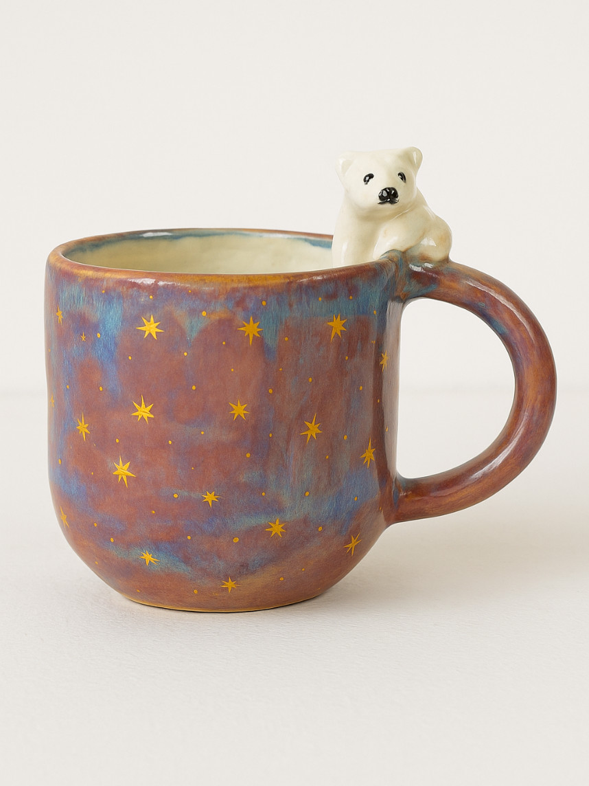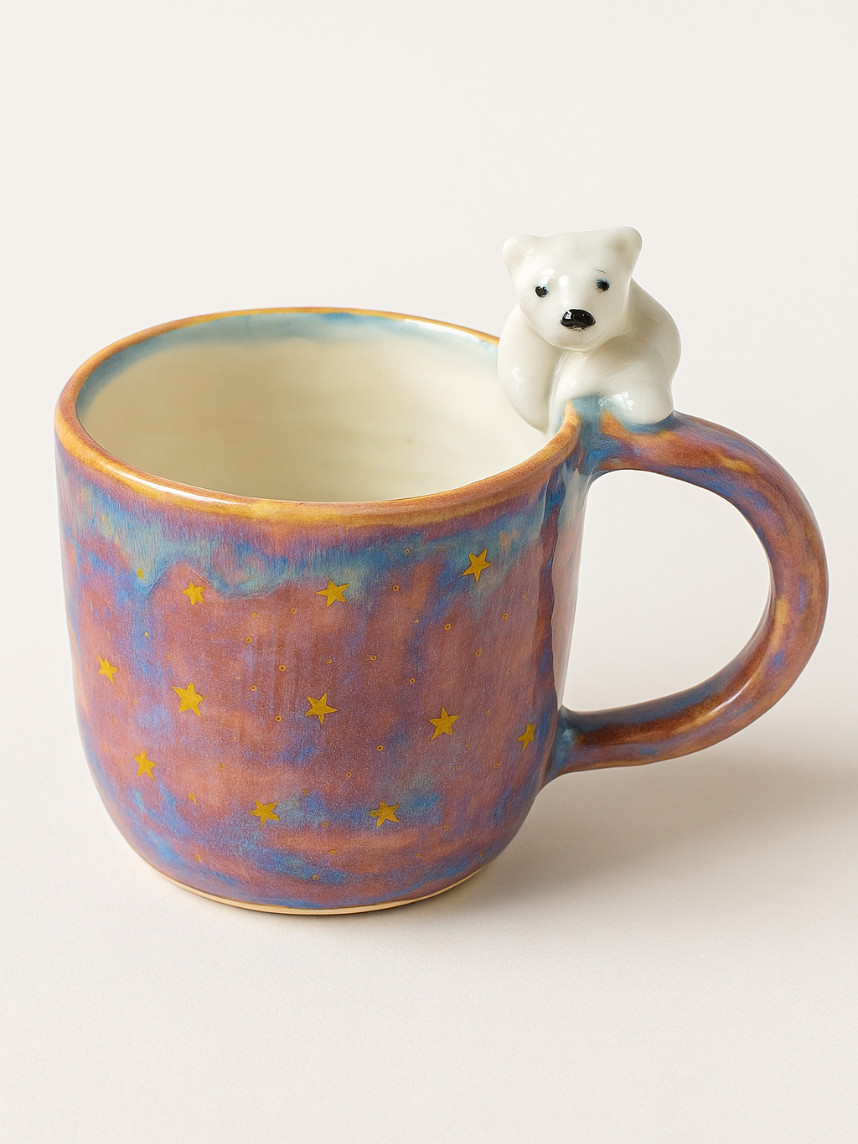 Кружка ручной работы с росписью и фигуркой белого медведя. Производитель - московский бренд «Mama Cherepaha».